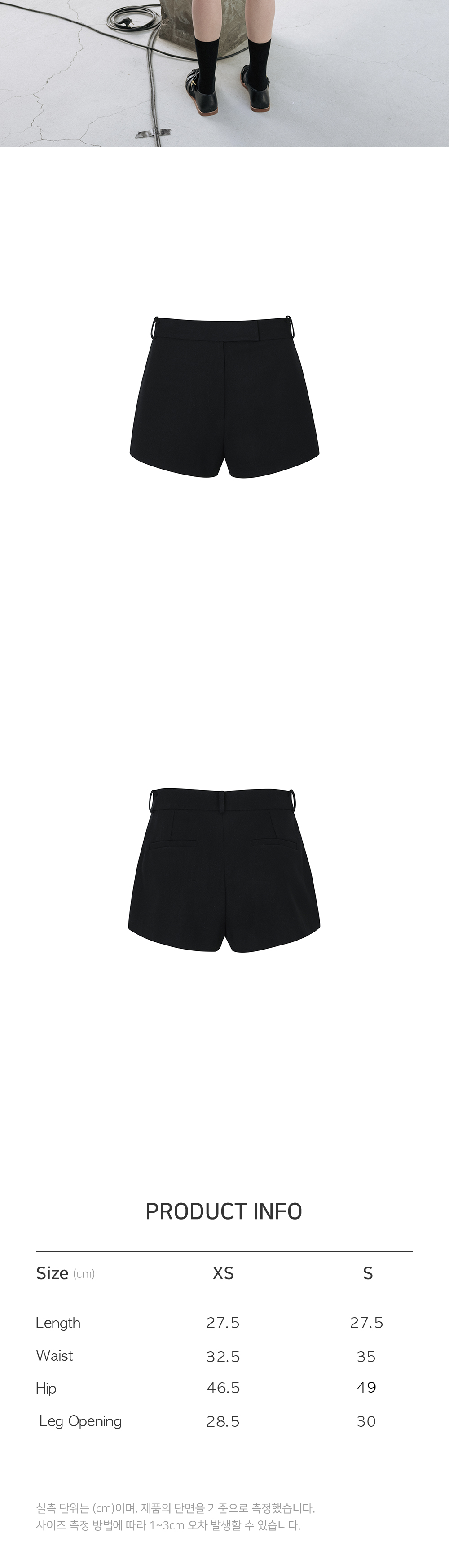 CARON CREPE JACKET 셋업으로 착용가능한 마이크로쇼츠는 기존에 쇼츠보다는 짧은기장으로 부담스럽지 않은 실루엣을 위해 신경을 쓴 아이템입니다. 미드라이즈에 양쪽 포켓으로 실용성을 더했으며 안쪽 단추를 넣어 안정적인 피팅이 가능합니다. 미니멀한 디자인으로 다양하게 스타일링이 가능한 아이템입니다.
