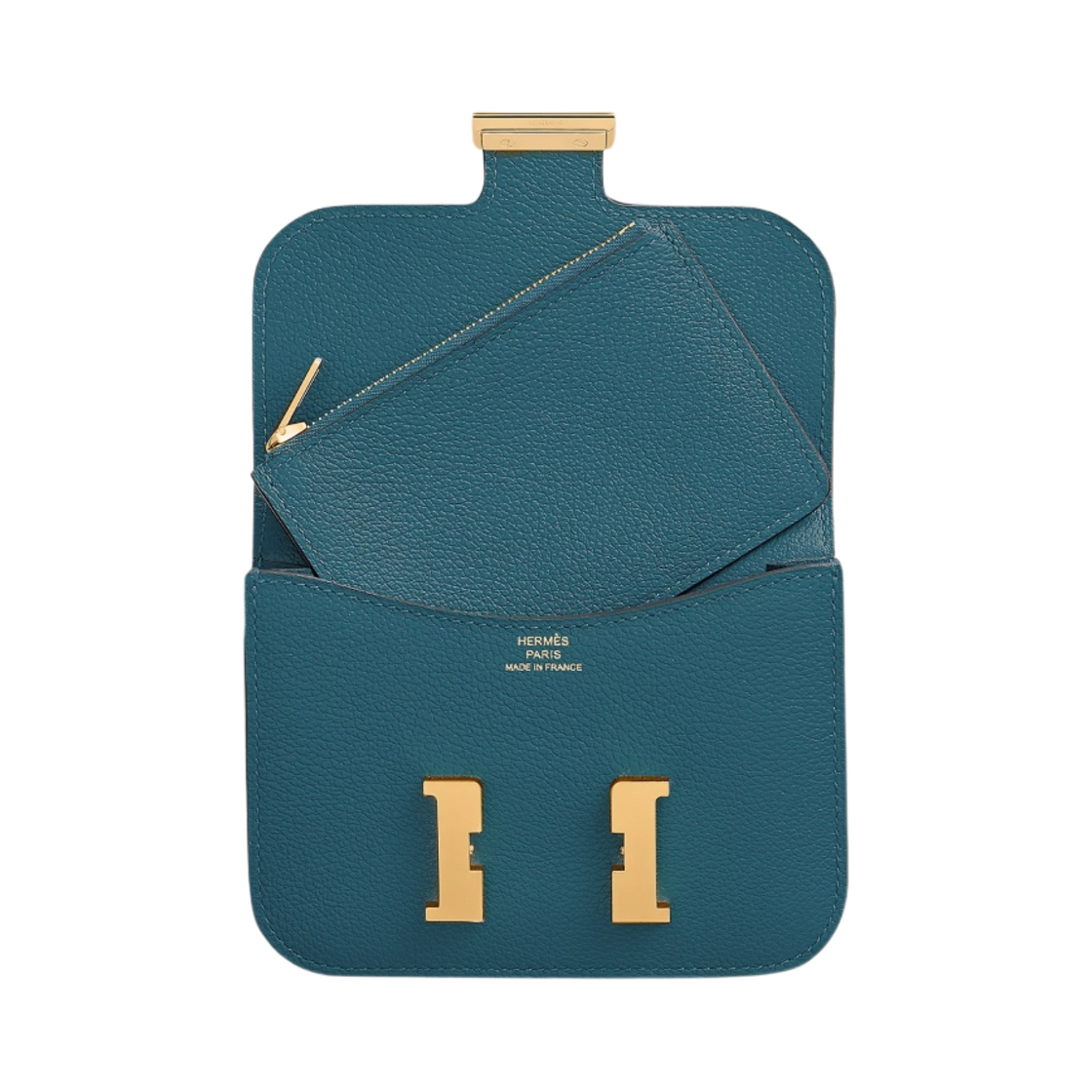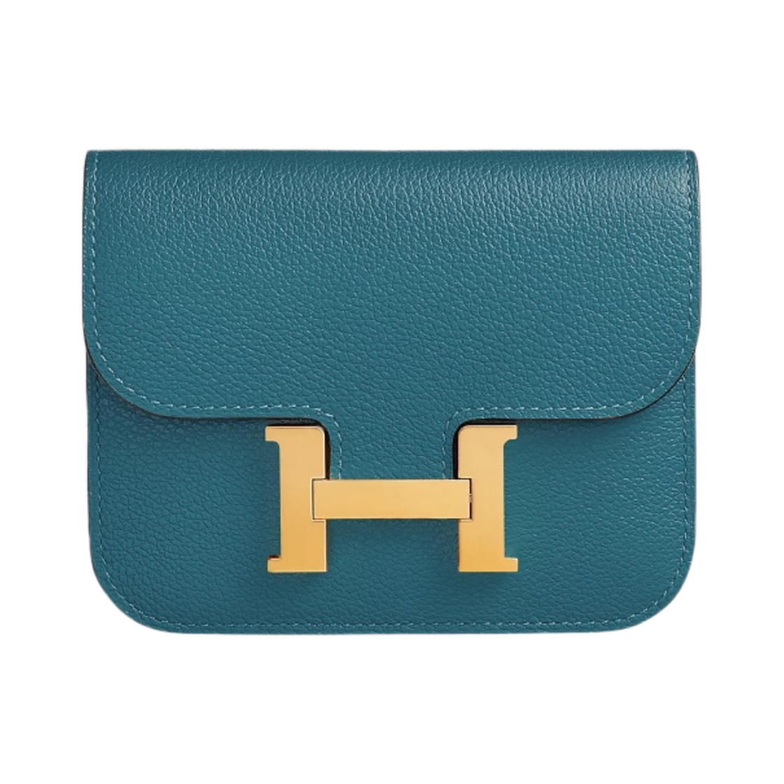 Hermes Constance Slim Wallet Evercolor & Gold New Bleu Jean