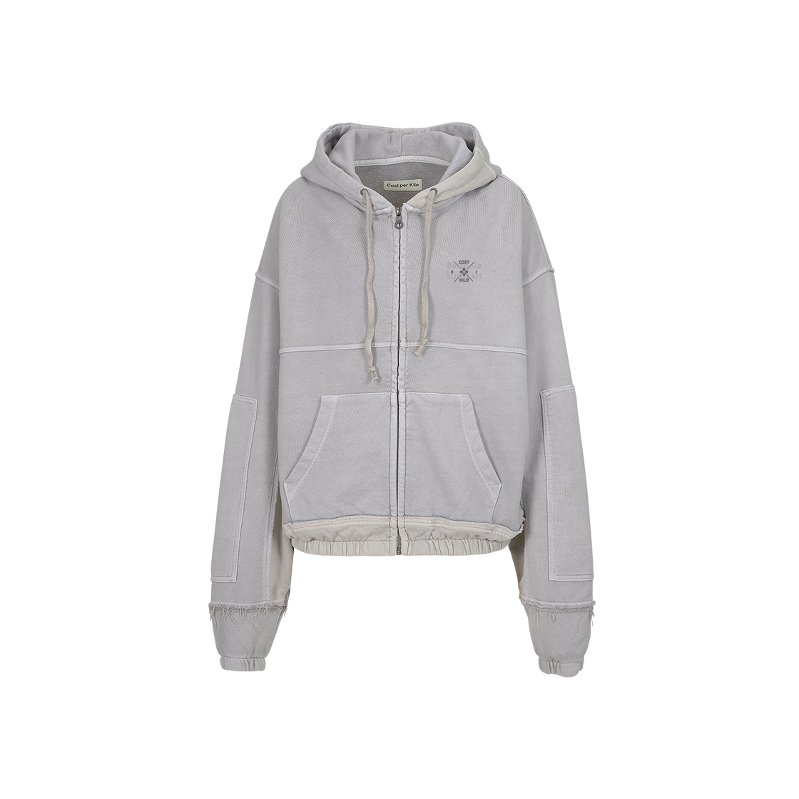 리페어드 디자인 비대칭 집업 후디 빈티지 워싱 전면 지퍼 여밈 소매와 밑단 조임을 위한 고무줄 옷 전체에 비대칭 방식의 패치워크와 절개 디테일 가슴에 그래픽 프린팅 후드에 드로우 스트링 Shell : Cotton 100% Made in Korea