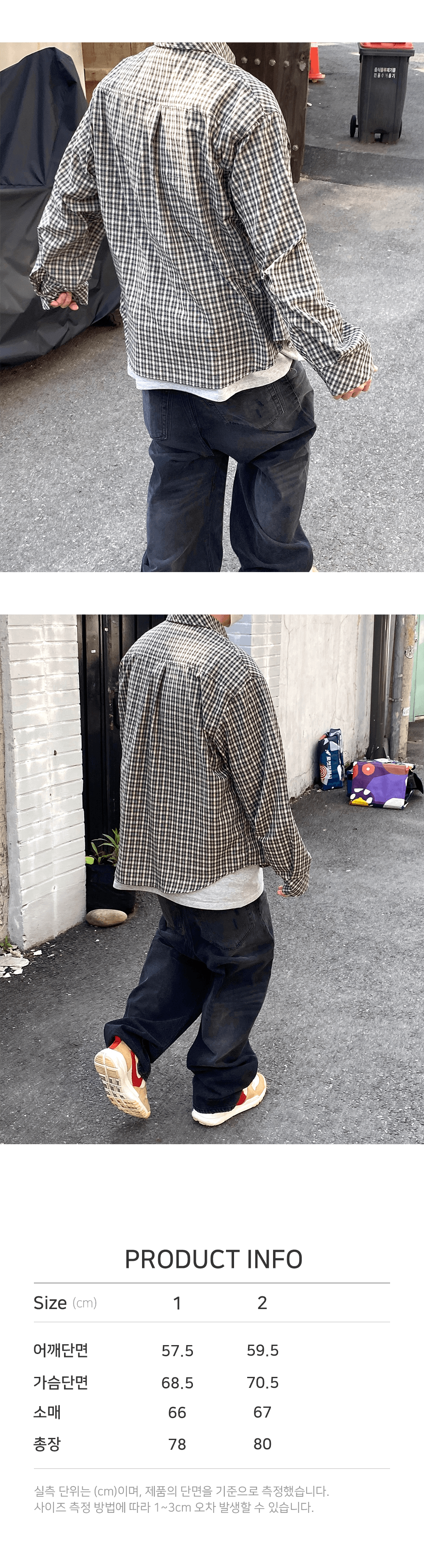 언더마이카 무.33 안티 Fxxking 로고 플레이 베이직 롱 슬리브 체크 셔츠 블랙 베이지
