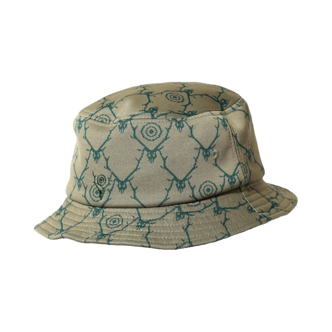 South2 West8 Bucket Hat Poly Jacquard Skull Target Khaki