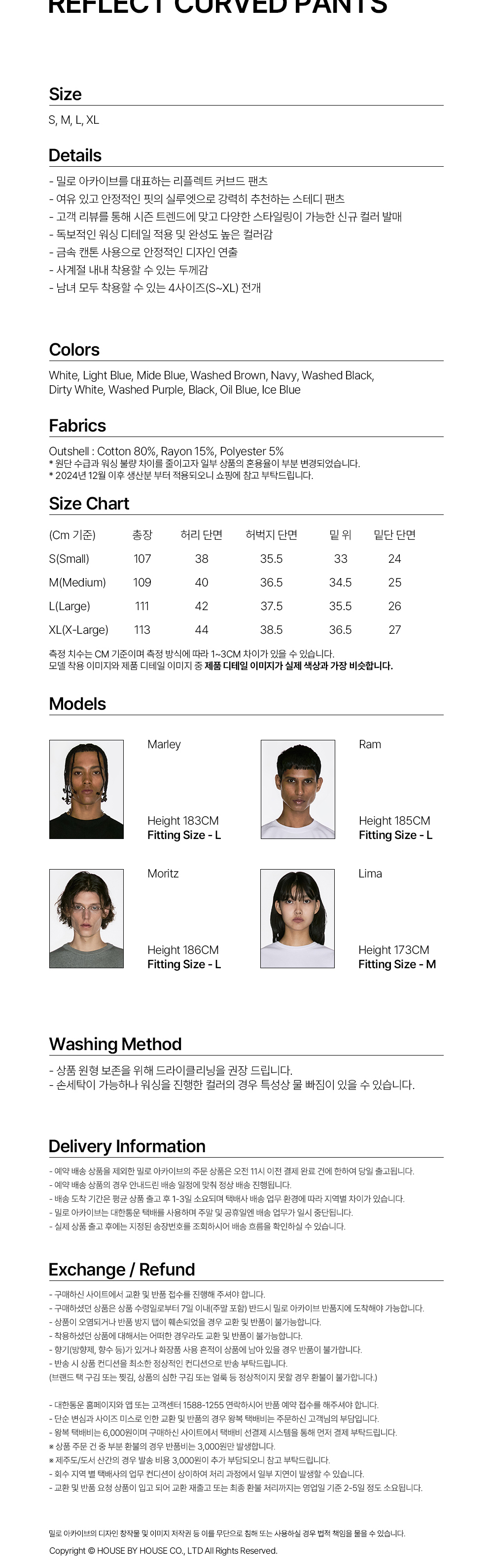 해당 상품은 10/11 순차 출고 예정입니다. - 밀로 아카이브를 대표하는 리플렉트 커브드 팬츠 - 여유 있고 안정적인 핏의 실루엣으로 강력히 추천하는 스테디 팬츠 - 고객 리뷰를 통해 시즌 트렌드에 맞고 다양한 스타일링이 가능한 신규 컬러 발매 - 독보적인 워싱 디테일 적용 및 완성도 높은 컬러감 - 금속 캔톤 사용으로 안정적인 디자인 연출 - 사계절 내내 착용할 수 있는 두께감 - 남녀 모두 착용할 수 있는 4사이즈(S~XL) 전개