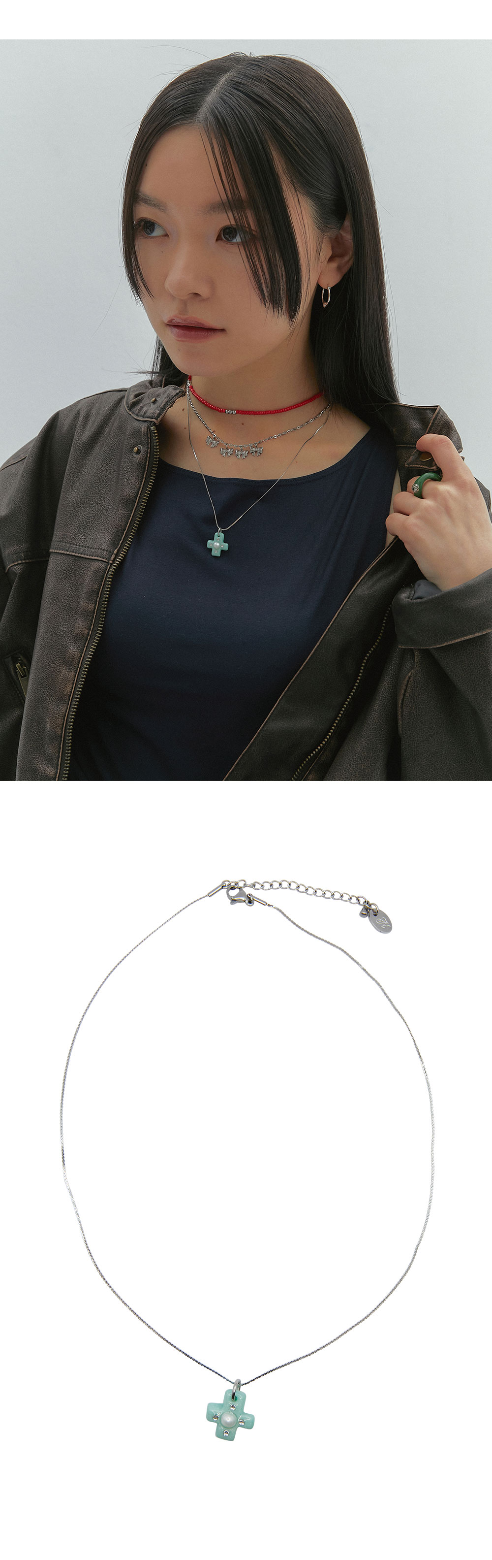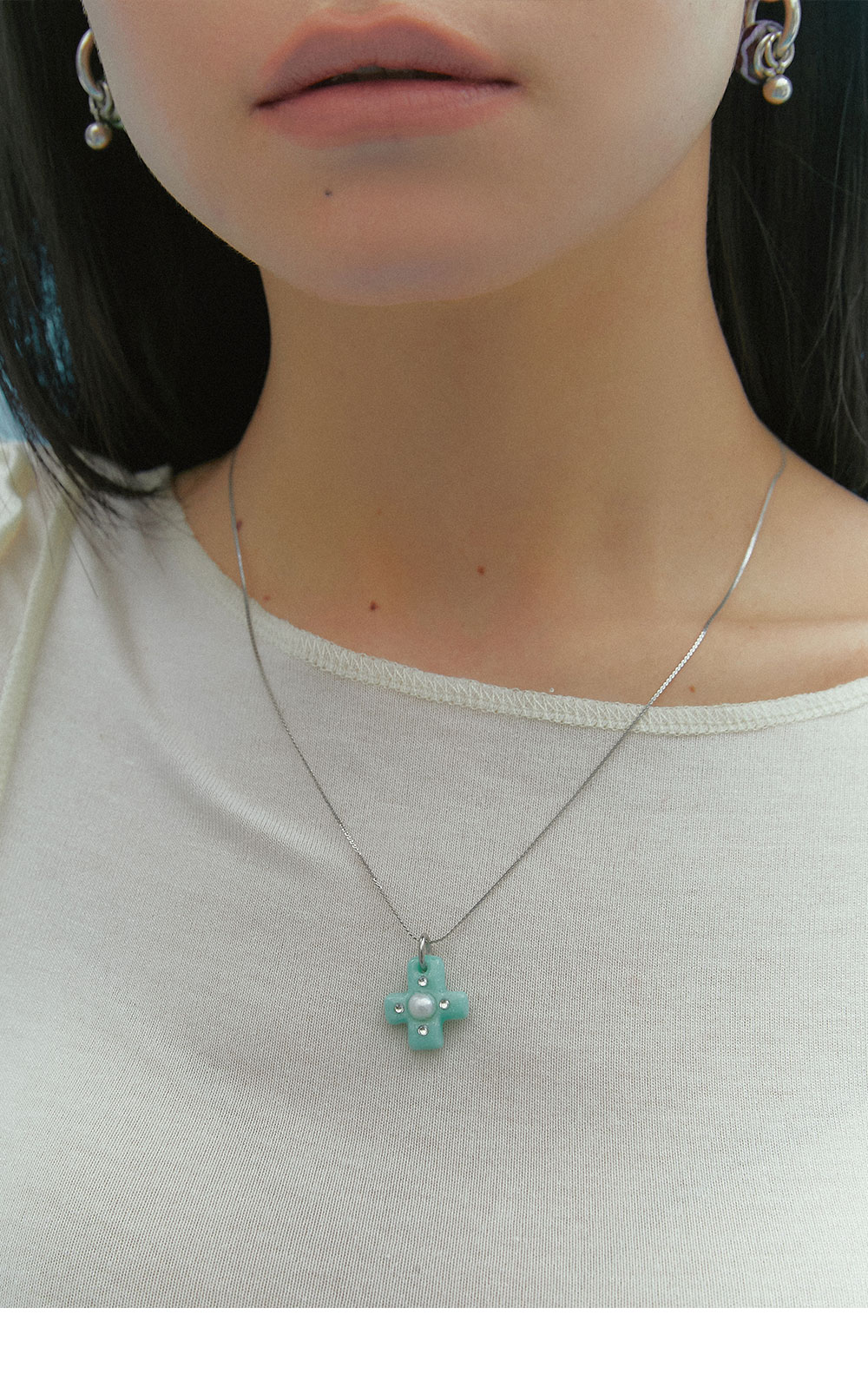 엔프프 크로스웨이 펄 네크리스 민트