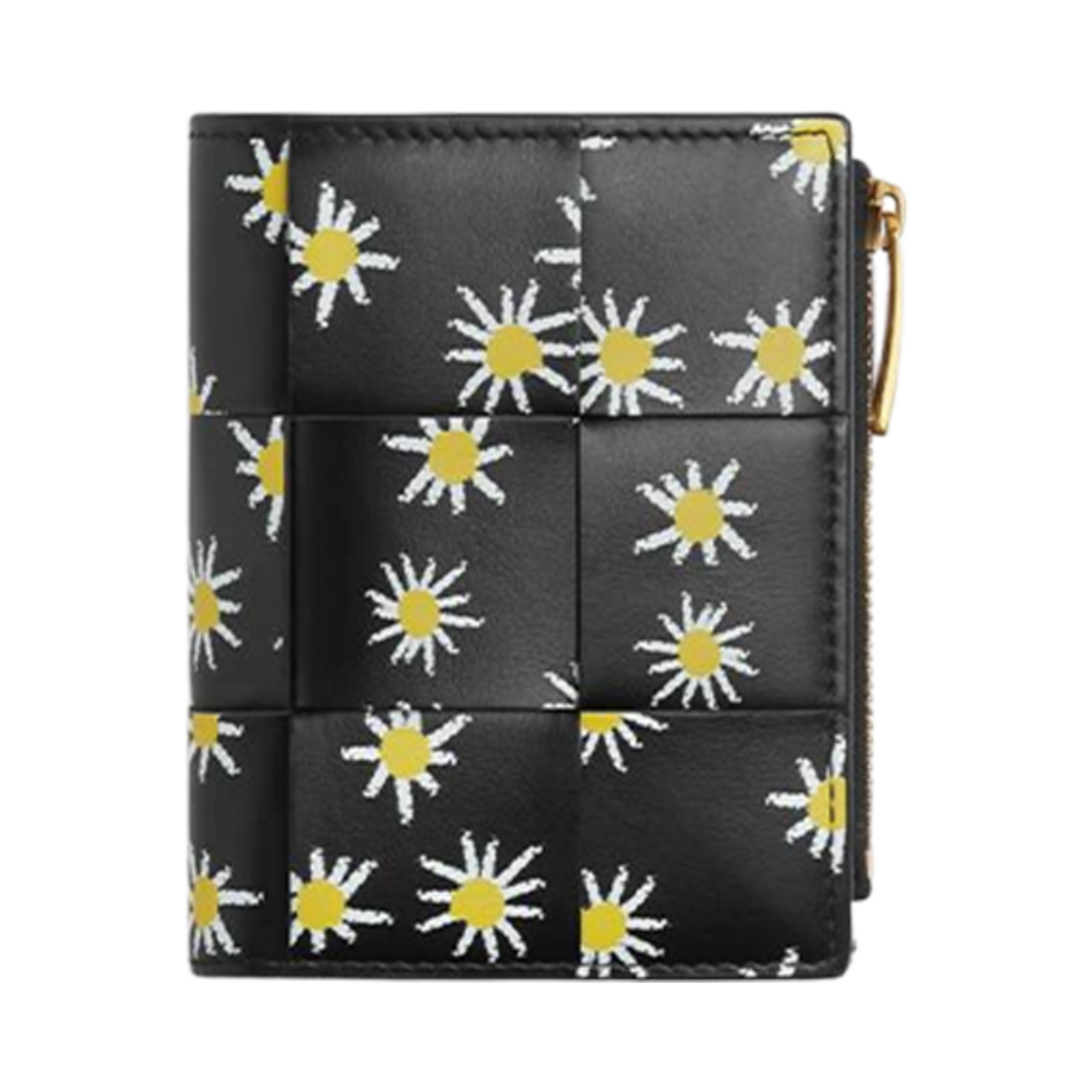 Bottega Veneta Small Cassette Bi-Fold Zip Wallet Black White Yellow