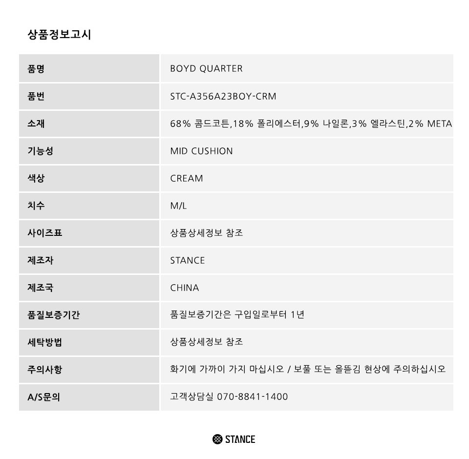 스탠스 보이드 쿼터 크림