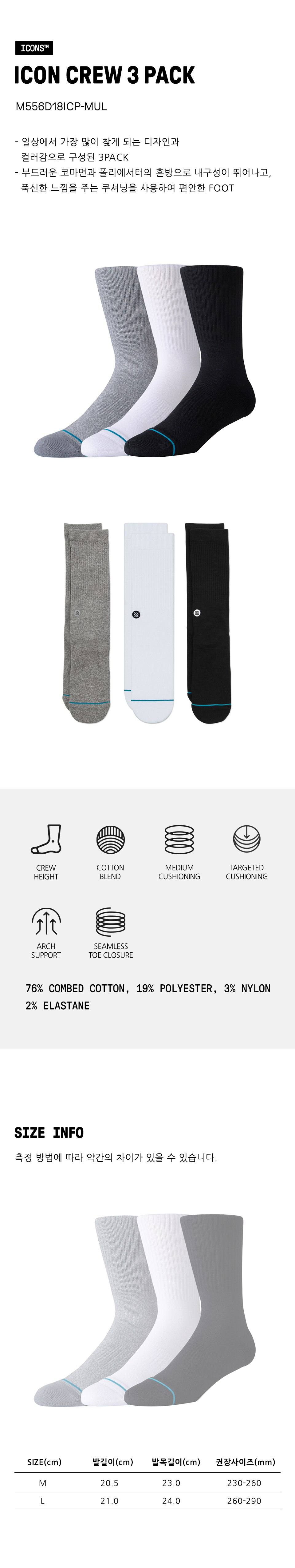 스탠스 아이콘 크루 3팩 멀티