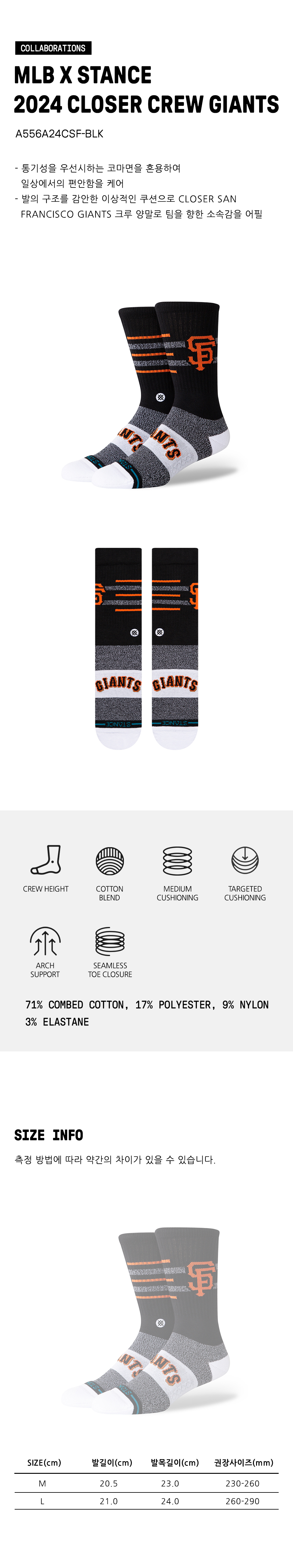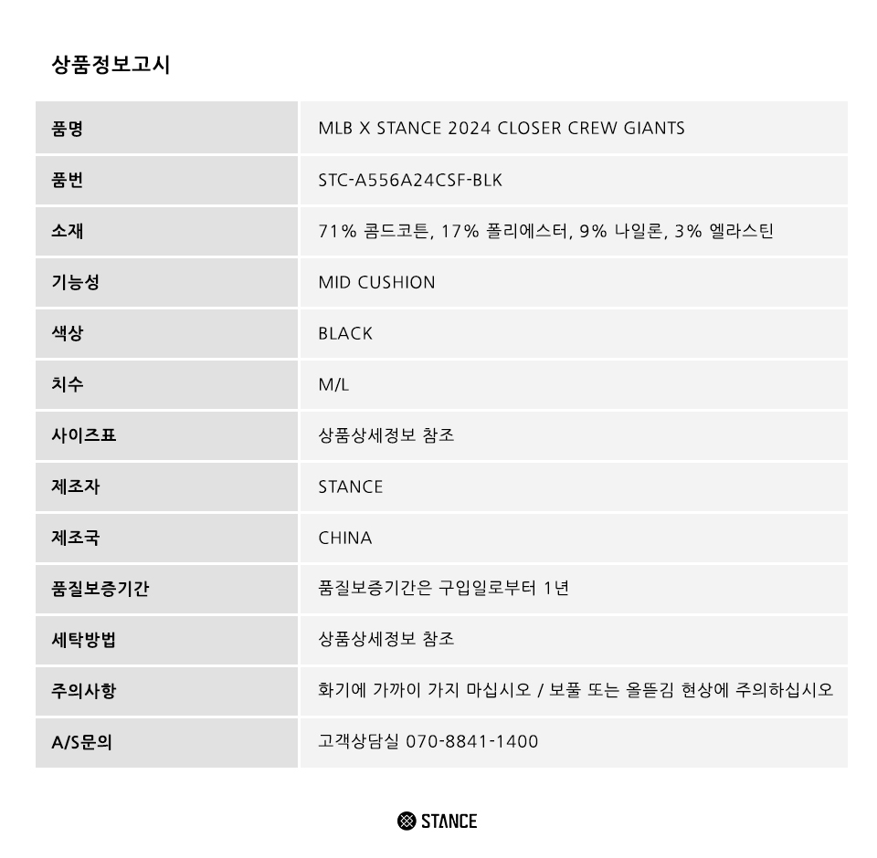 스탠스 X 엠엘비 2024 클로저 크루 자이언츠 블랙