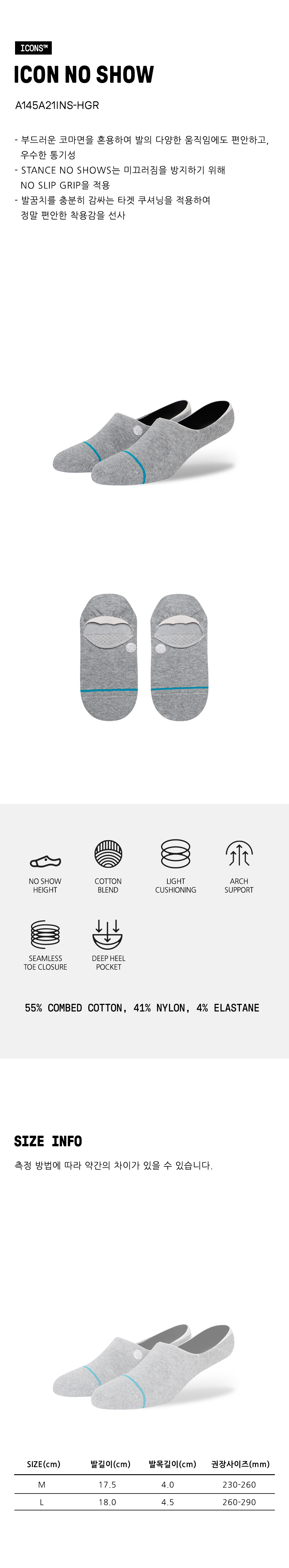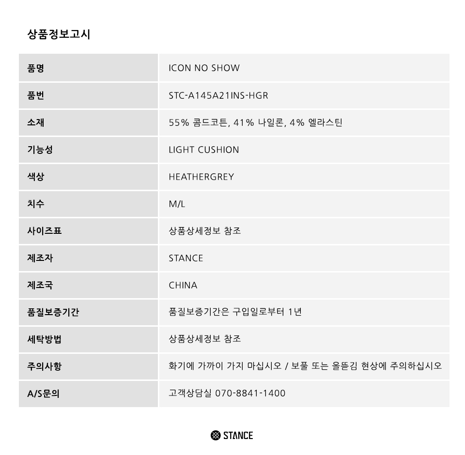 스탠스 아이콘 노 쇼 헤더 그레이