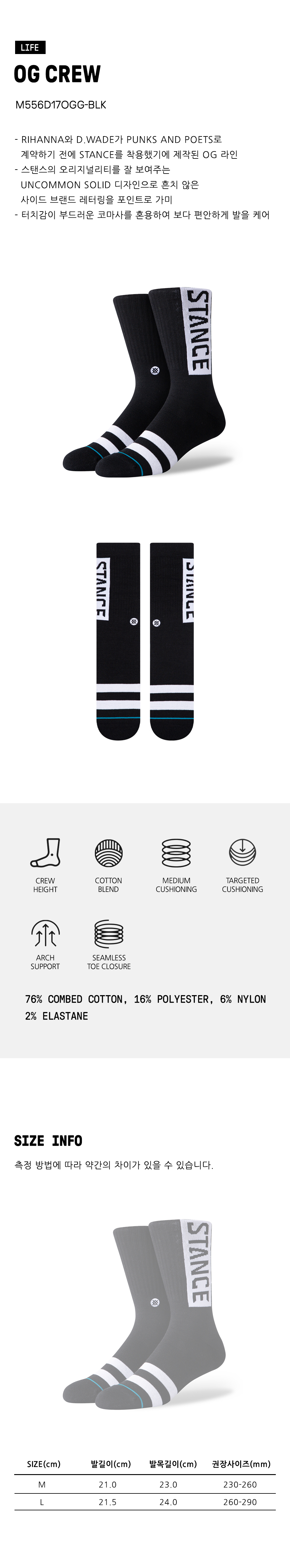 스탠스 OG 크루 블랙