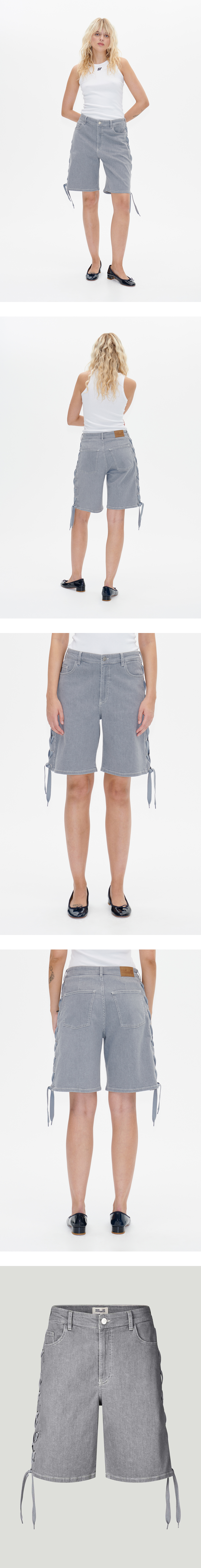 바움 운드 페르드가르텐의 미드라이즈 버뮤다 스타일 데님 팬츠인 네오 쇼츠입니다. 버튼 여밈의 지퍼 플라이, 포켓 디테일, 측면에 끈으로 묶인 리본이 특징입니다. - 레귤러 핏 - 넉넉한 밑위 - 100% 오가닉 코튼 소재 * 모델 신체 스펙 : 174cm / 착용 사이즈 : 36