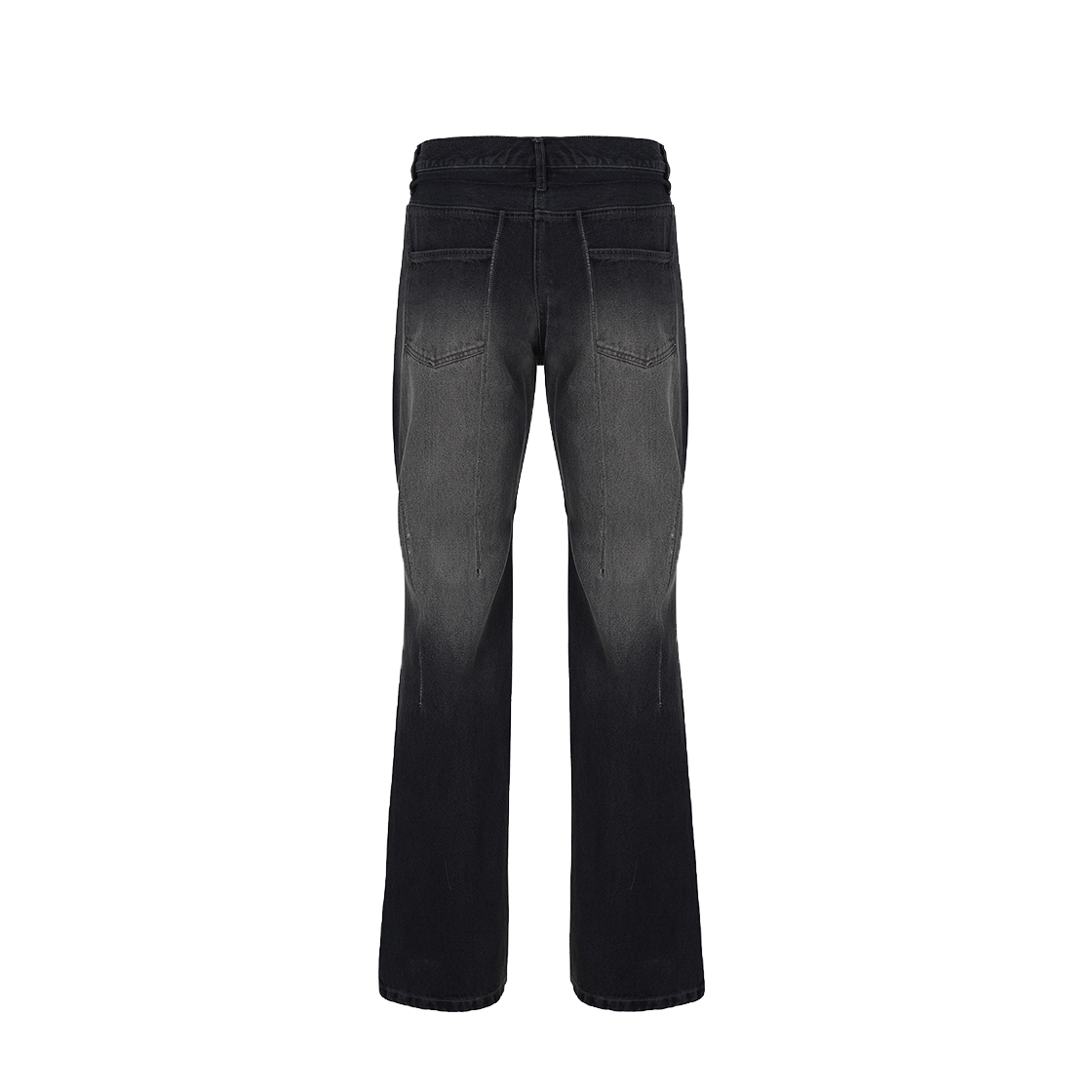 가먼트 다잉 데님 부츠컷 진 클래식한 형태의 5포켓 배치 전면과 후면 오버록 스티치를 이용한 디테일 버튼 플라이 구조 금속 리벳으로 보강한 앞 주머니 허리를 여밀 수 있는 끈과 금속 팁 Overdyed denim boots cut jeans 5 pocket details Overlock stitch details all over Button fly Ribet hardware at front pocket Draw string with metal hardware tips Cotton 100% MADE IN KOREA