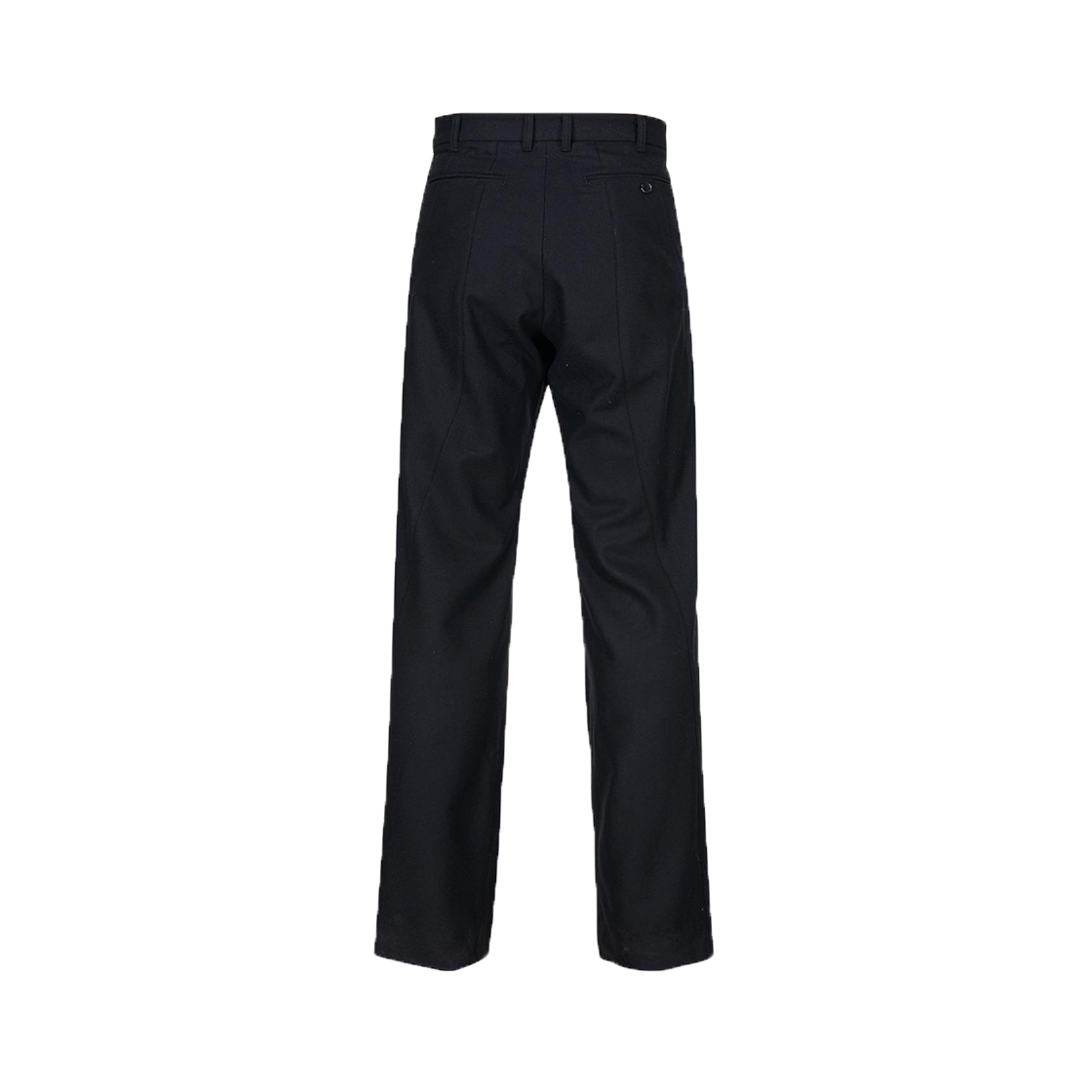 입체적 구조의 핀턱 디테일 비스코스 블렌드 코튼 플레어 컷 슬랙스 전체적으로 들어간 입체 패턴과 핀턱 주름으로 활동분량 확보 전면 천연 소뿔단추와 지퍼를 사용한 여밈 전면 두개의 주머니와 뒷면 두개의 주머니, 소뿔 단추여밈 허리 벨트루프와 묶을수 있는 비스코스 소재의 끈, 금속 팁