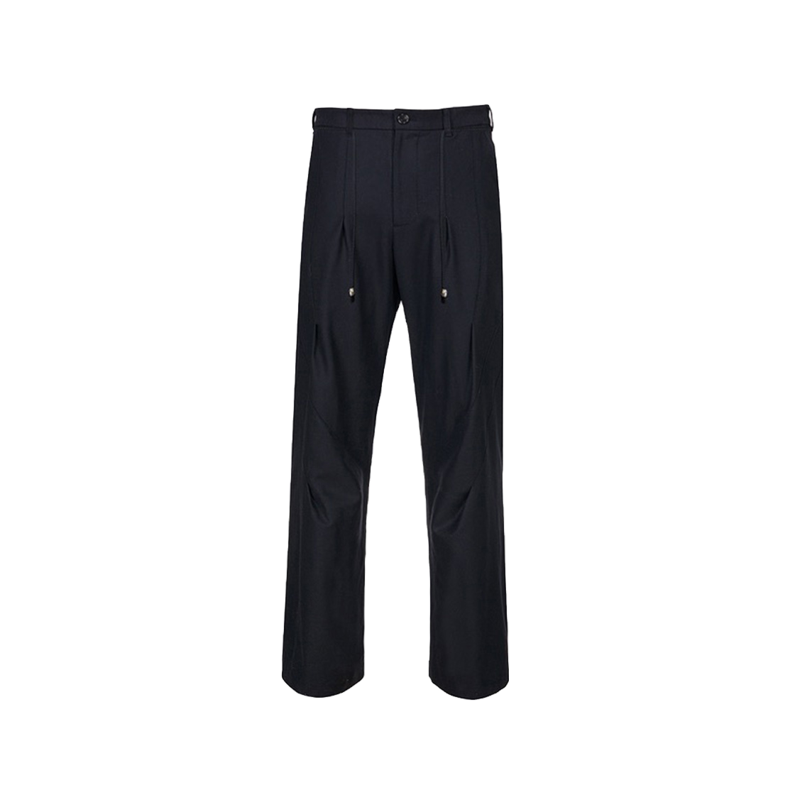 입체적 구조의 핀턱 디테일 브리티쉬 메리노 울 플레어 컷 슬랙스 형태가 유지되는 가공의 브리티쉬 메리노 울 소재 전체적으로 들어간 입체 패턴과 핀턱 주름으로 활동분량 확보 전면 천연 소뿔단추와 지퍼를 사용한 여밈 전면 두개의 주머니와 뒷면 두개의 주머니, 소뿔 단추여밈 허리 벨트루프와 묶을수 있는 비스코스 소재의 끈, 금속 팁