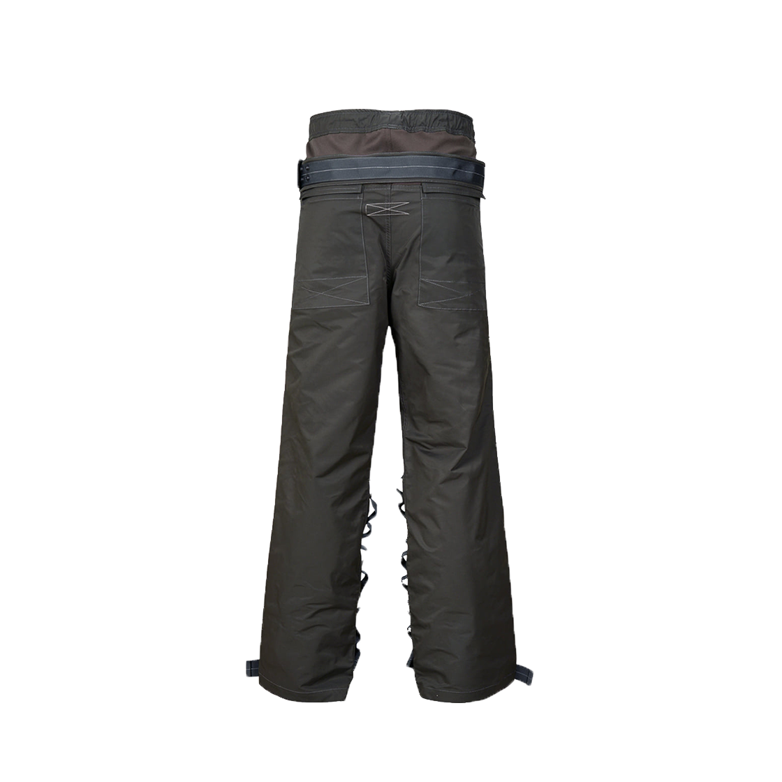 폴리 재질의 벨티드 트랙 팬츠. 활동성을 위한 상단부 져지 원단 사용. 스냅 버튼을 이용하여 실루엣 조정 가능한 허리, 종아리, 발목 부분 웨빙 밴드. 전면 두개의 주머니와 뒤쪽 두개의 패치포켓. 허리를 조이는 용도의 스트링과 엘라스틱 밴드. Poly belted track pants. Upper jersey fabric for active use. Webbing bands at the waist, calves and ankles for silhouette adjustment with snap buttons. Two front pockets and two back patch pockets. String and elastic band for tightening the waist. SHELL A : 100% POLYESTER SHELL B : 93% POLYESTER/ 7% SPAN MADE IN KOREA