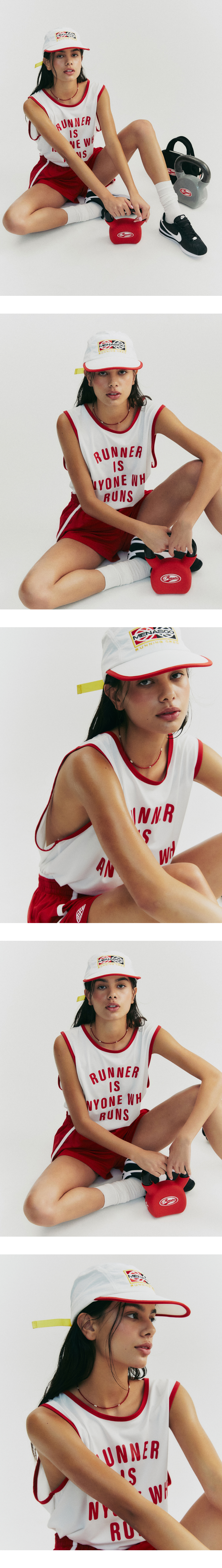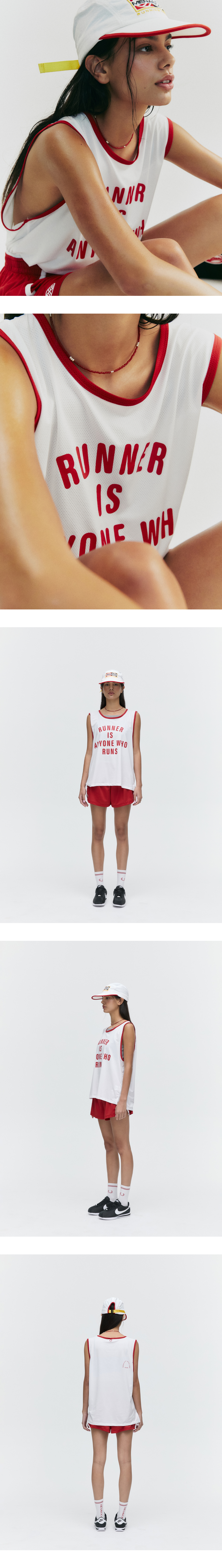 미나수 메쉬러닝나시TOP 슬로건나염 민소매 화이트