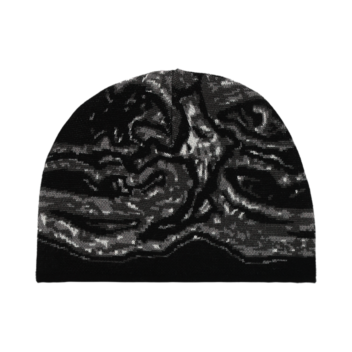 아크릴 울 혼방 소재의 마이크로 자카드 그래픽 니트 비니 Micro jacquard graphic knit beanie in acrylic wool blend. Acrylic 70%/ Nylon 25%/ Wool 5% MADE IN KOREA