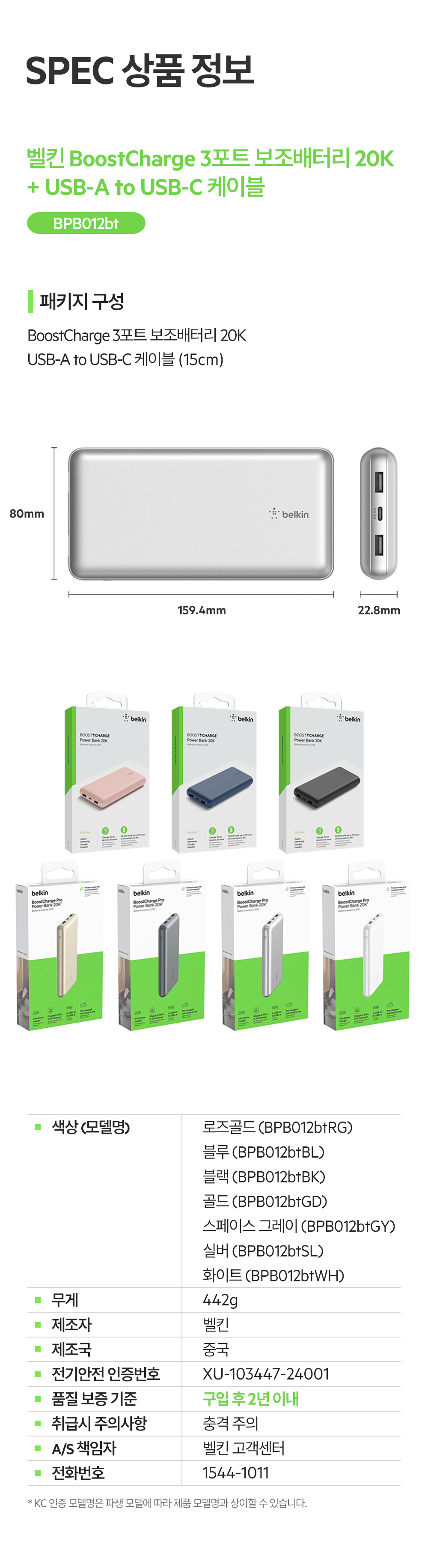 벨킨 20000mAh 3-port 15W PD 고속 충전 보조배터리 BPB012bt 골드
