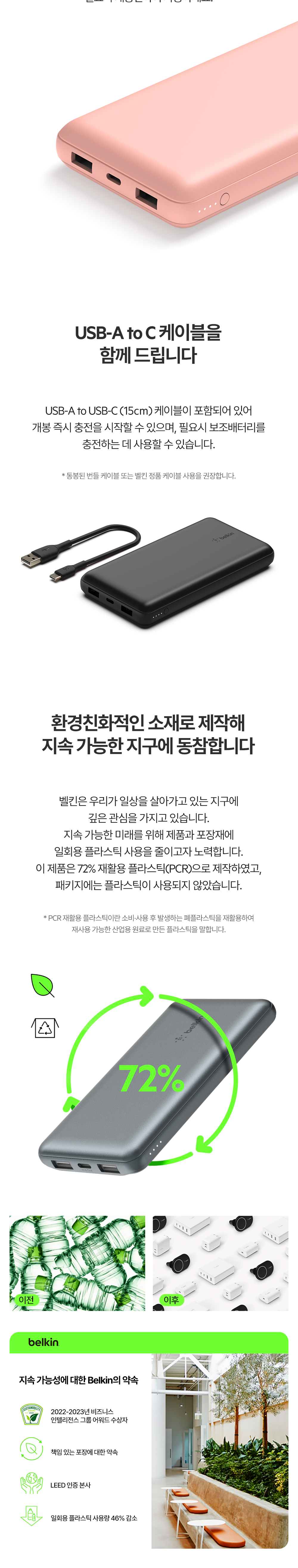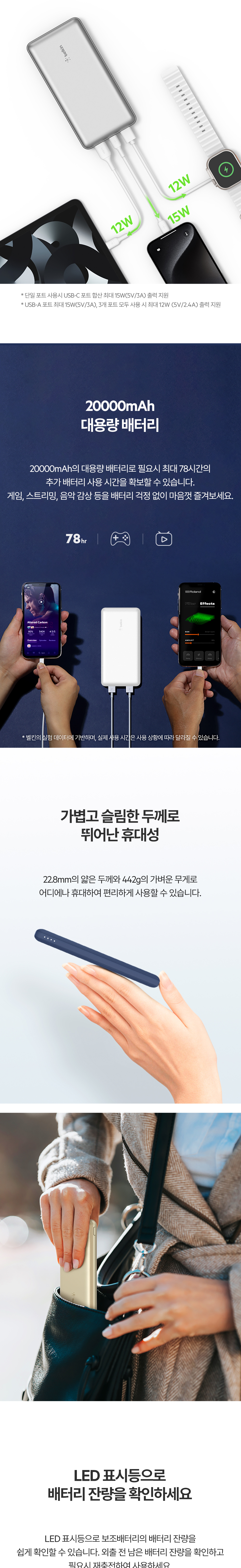 벨킨 20000mAh 3-port 15W PD 고속 충전 보조배터리 BPB012bt 블랙