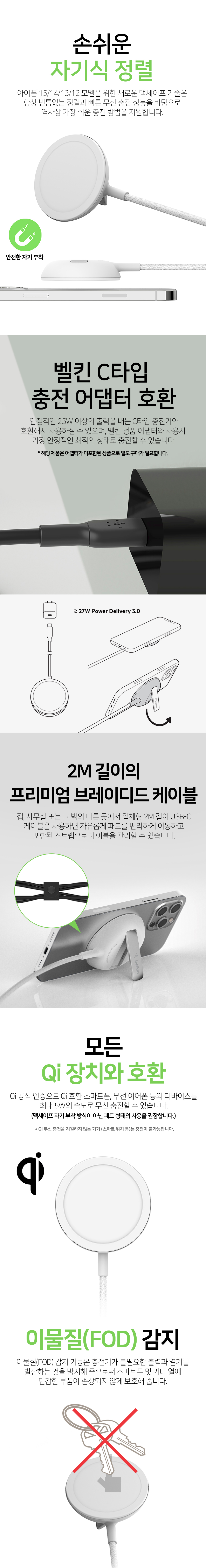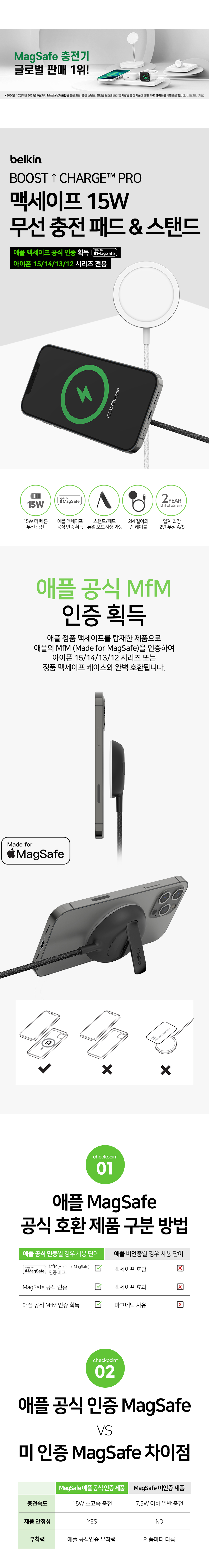 벨킨 15W 맥세이프 고속 무선 충전 패드 스탠드 WIA004ds 화이트