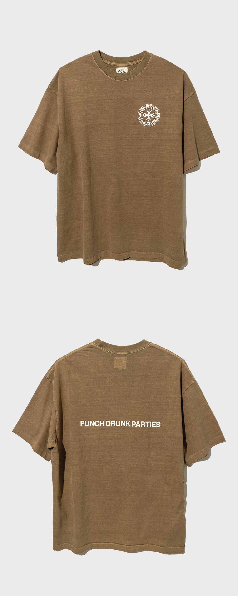 펀치 드렁크 파티즈 서클 로고 가먼트 다이드 티 카멜