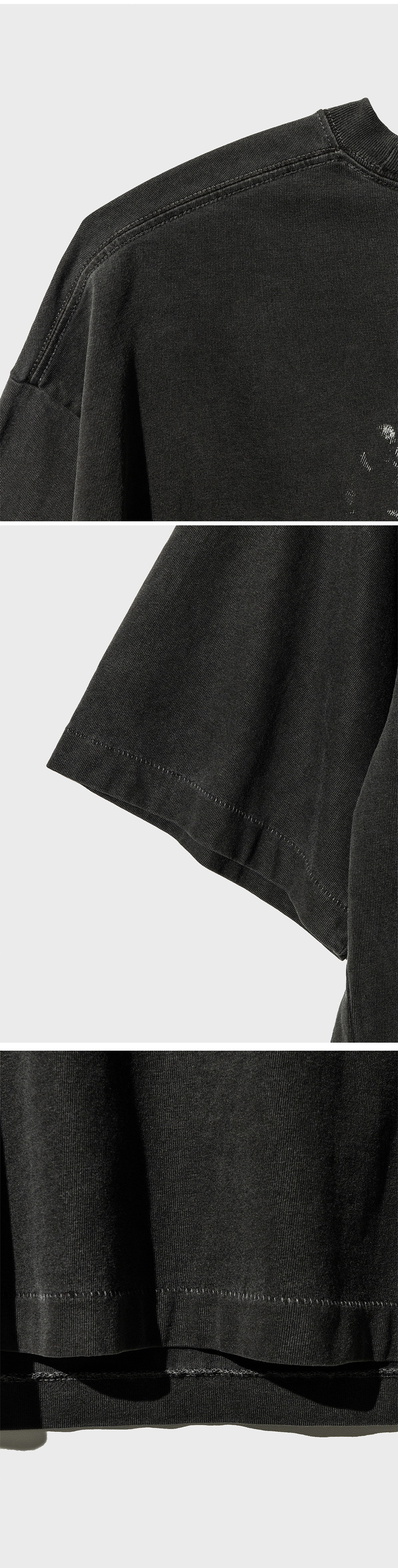100% Cotton, Oversized Silhouette Garment Dyed, 70's Sewing (1needle+3Threads) 100% 면, 오버사이즈 실루엣 70년대 수소봉제, 가먼트다이 밀도 높은 16수 싱글 면 100%의 원단으로 비침이 적고 단단해, 신체 실루엣 보완이 가능합니다. 오버사이징 된 넓은 너비에, 소매가 길어 캐쥬얼하고 편안한 무드가 강한 제품입니다. 70년대 수소봉제 기법으로 소매와 밑단을 마감, 오랜 시간 변형 및 손상을 최소화 하여 활용 가능합니다. 가먼트 다이의 고급스러운 색감으로 마무리 된 제품이며 단단하면서도 부드러운, 훌륭한 터치감을 가집니다. 염색 공법 상 자연스러운 물빠짐이 있습니다. 반드시 착용 전 단독세탁하여 주시고, 시간이 지날수록 물빠짐에 의한 경년변화가 멋진 제품입니다.