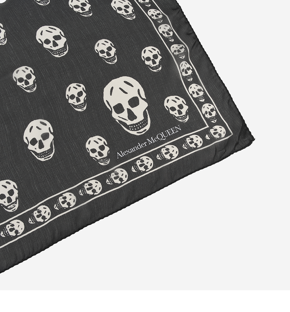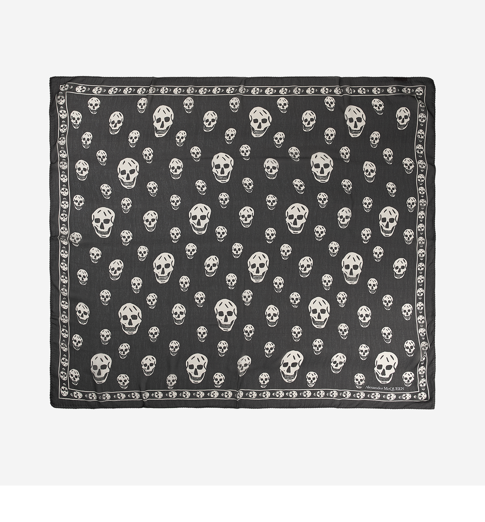 알렉산더 맥퀸 클래식 실크 블렌드 스컬 스카프 블랙