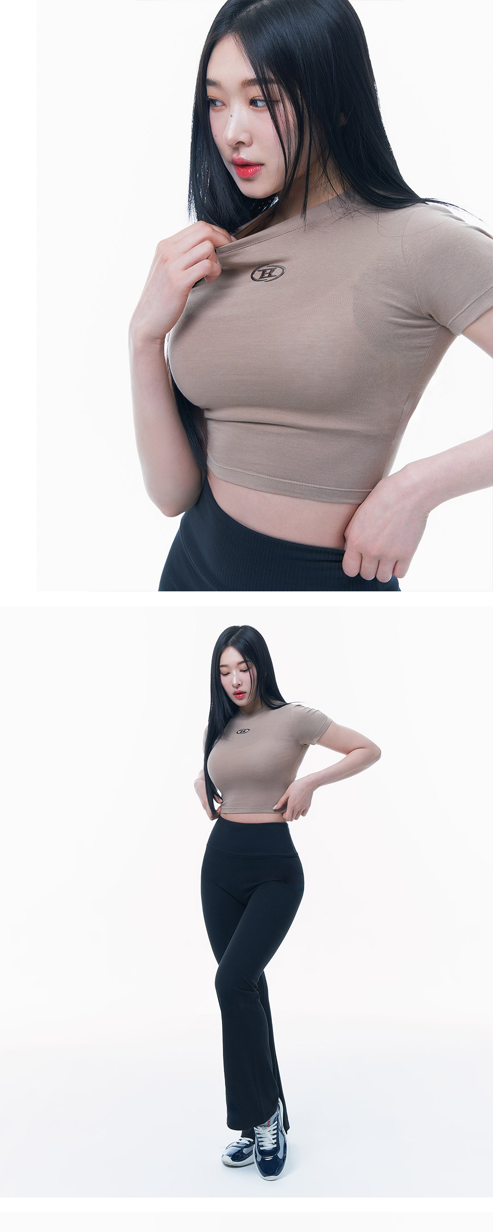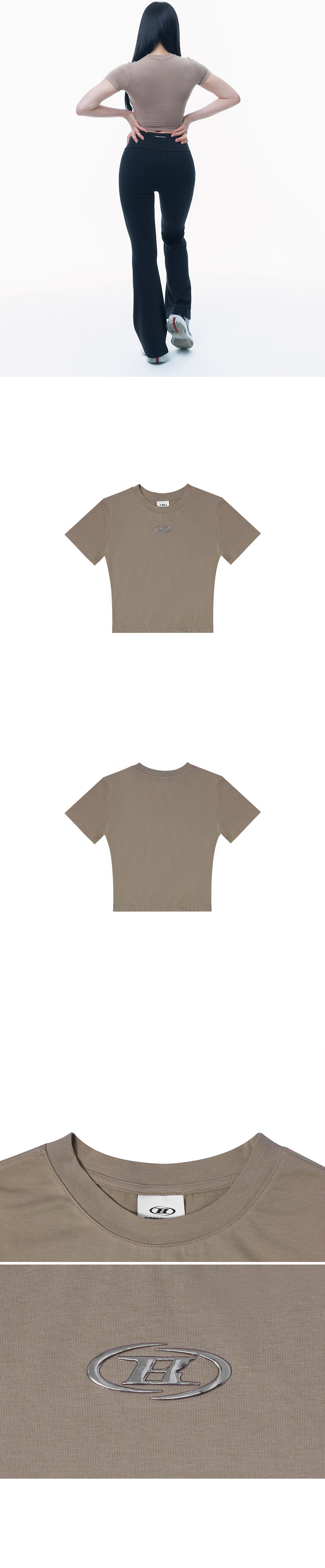 본투윈 실버 B 모달 크롭 티셔츠 라이트브라운