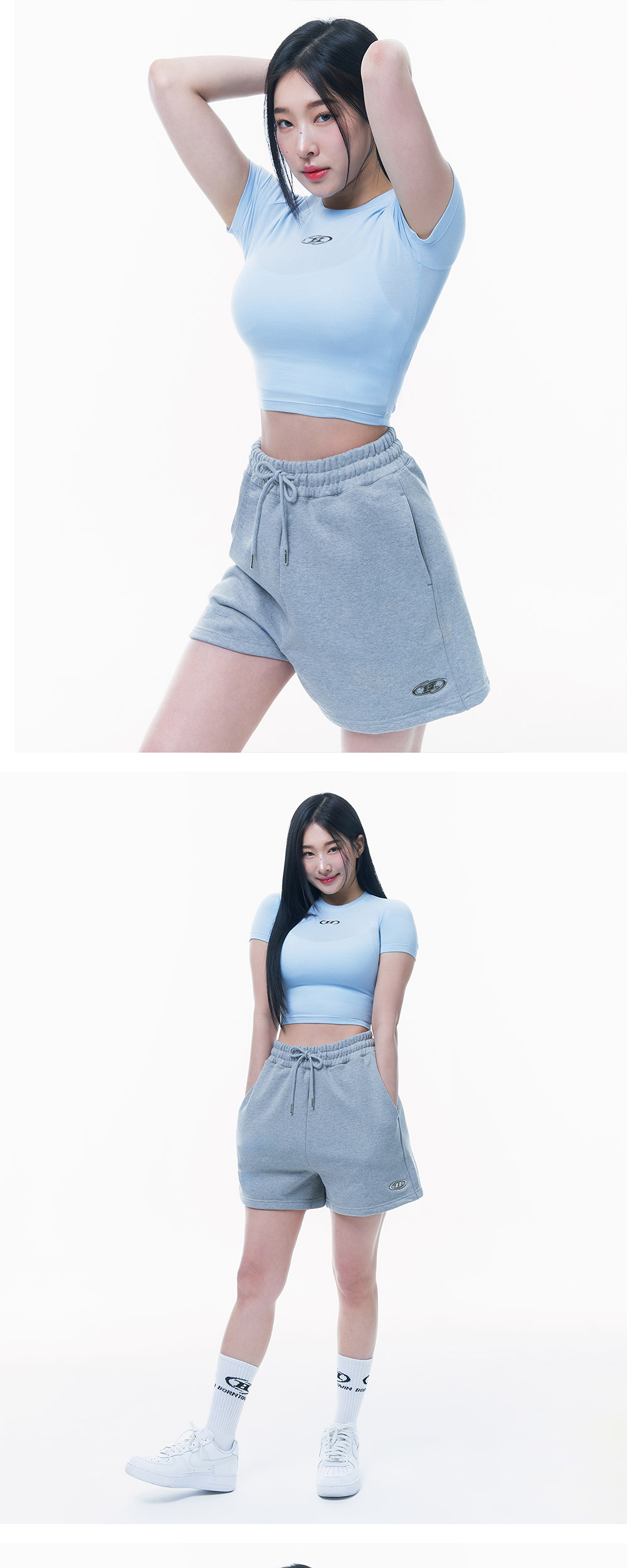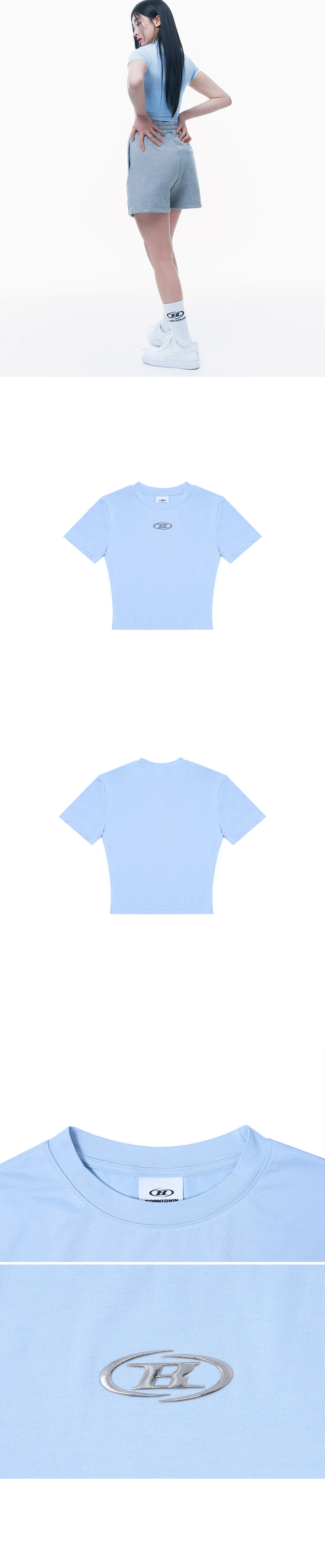 본투윈 실버 B 모달 크롭 티셔츠 스카이블루