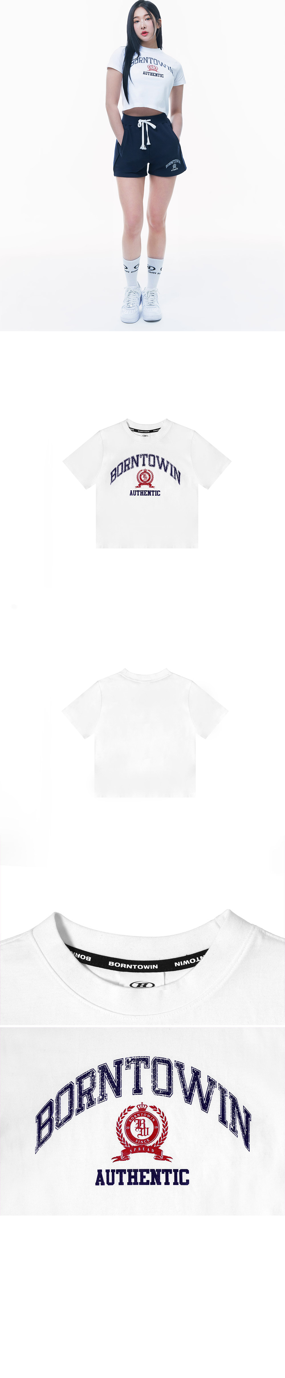 본투윈 크랙 BORNTOWIN 엠블렘 크롭 티셔츠 화이트