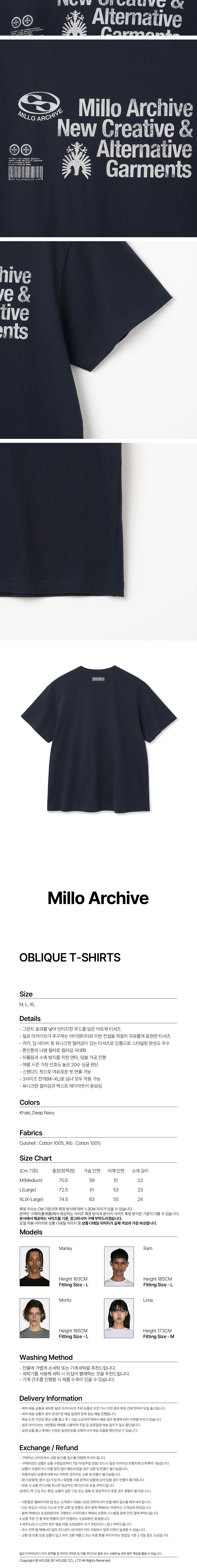 - 그런지 효과를 넣어 빈티지한 무드를 담은 아트웍 티셔츠 - 밀로 아카이브가 추구하는 아이덴티티와 이번 컨셉을 적절히 자유롭게 표현한 티셔츠 - 카키, 딥 네이비 등 유니크한 컬러감이 있는 티셔츠로 단품으로 스타일링 완성도 우수 - 톤인톤의 나염 컬러로 컬러감 극대화 - 뒤틀림과 수축 방지를 위한 덴타, 덤블 가공 진행 - 여름 시즌 가장 선호도 높은 20수 싱글 원단 - 스탠다드 핏으로 여유로운 핏 연출 가능 - 3사이즈 전개(M~XL)로 남녀 모두 착용 가능 - 유니크한 컬러감과 텍스트 레이아웃이 돋보임