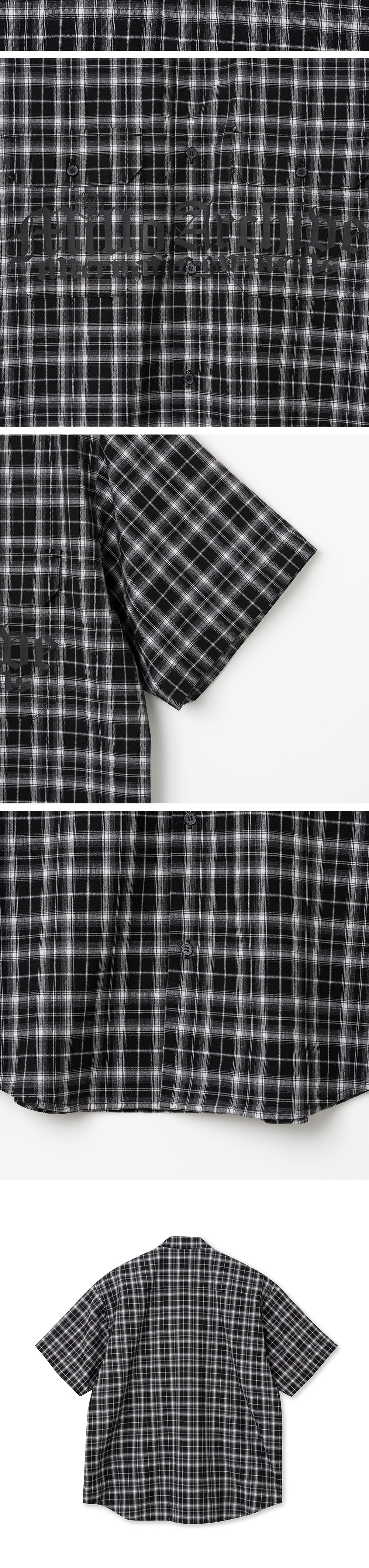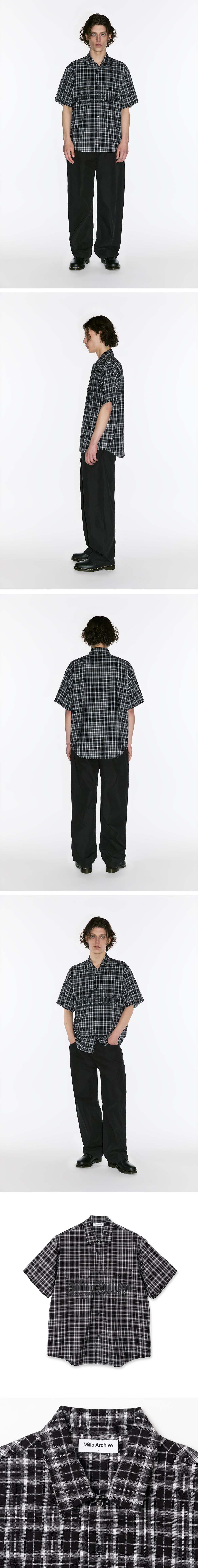 - 처음 선보이는 밀로 아카이브 캐주얼 라인의 체크 패턴의 반팔 셔츠 - 단품으로도 포인트 주기 좋은 빈티지 반팔 셔츠 - 시즌 아이덴티티를 담은 1도 나염 형태의 아트웍 그래픽 적용 - 양쪽 포켓 또한 체크 패턴 위치를 맞춰 셔츠의 완성도를 높임 - 셔츠 밑단의 라운드 디테일을 적용하여 캐주얼한 무드 극대화 - 상단 단추를 가시 스냅으로 디자인하여 오픈 카라 형태로도 착용 가능
