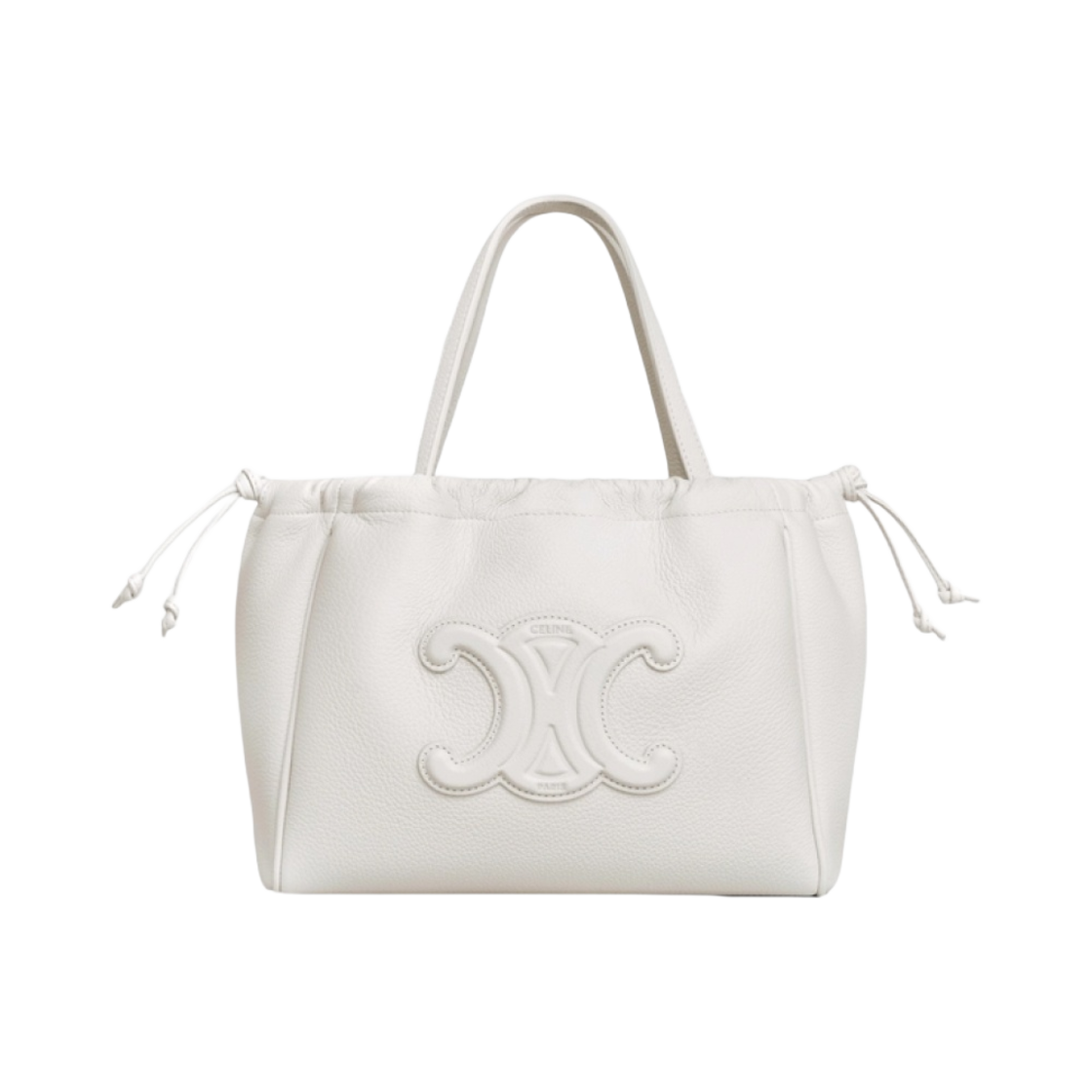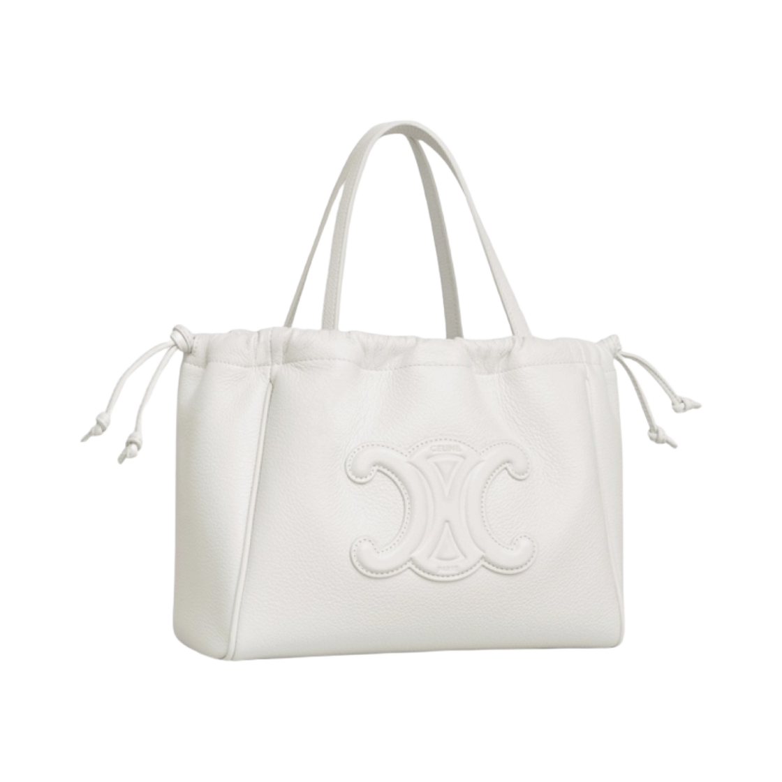 셀린느 스몰 카바스 드로우스트링 퀴르 트리옹프 그레인드 카프스킨 화이트