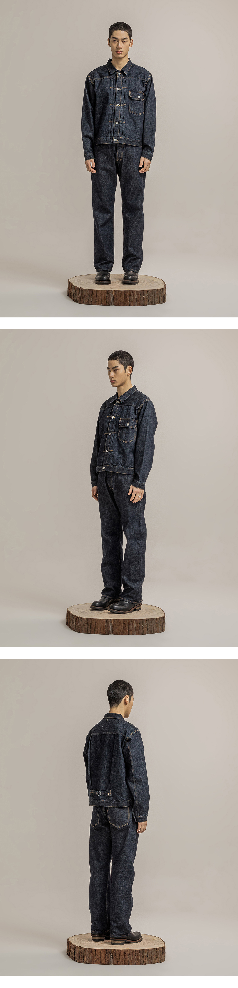 1101 - SELVEDGE DENIM PANTS는 일본 오카야마현에서 전통적인 데님 제조 기술을 활용하여 자체적으로 원단을 개발하는 'KUROKI'에서 만들어진 원단을 사용하였습니다. 천연 코튼과 인디고 염료등 친환경 소재로 만들어진 14.5OZ 두께의 원단입니다. 전통 방식으로 짜여진 원단이라 기계로 만든 원단보다 직조감이 있고 훨씬 견고 합니다. SELVEGE는 SELF - EDGE가 줄여진 단어로 인디고 염색을 하고 난 뒤 데님 원단 양쪽 끝 부분에 스티치를 박아 원단의 손상을 막기 위한 전통 재직 방식의 원단입니다. 그만큼 대량 생산이 불가능하고 작업 방식이 까다로우며 폭이 좁습니다.