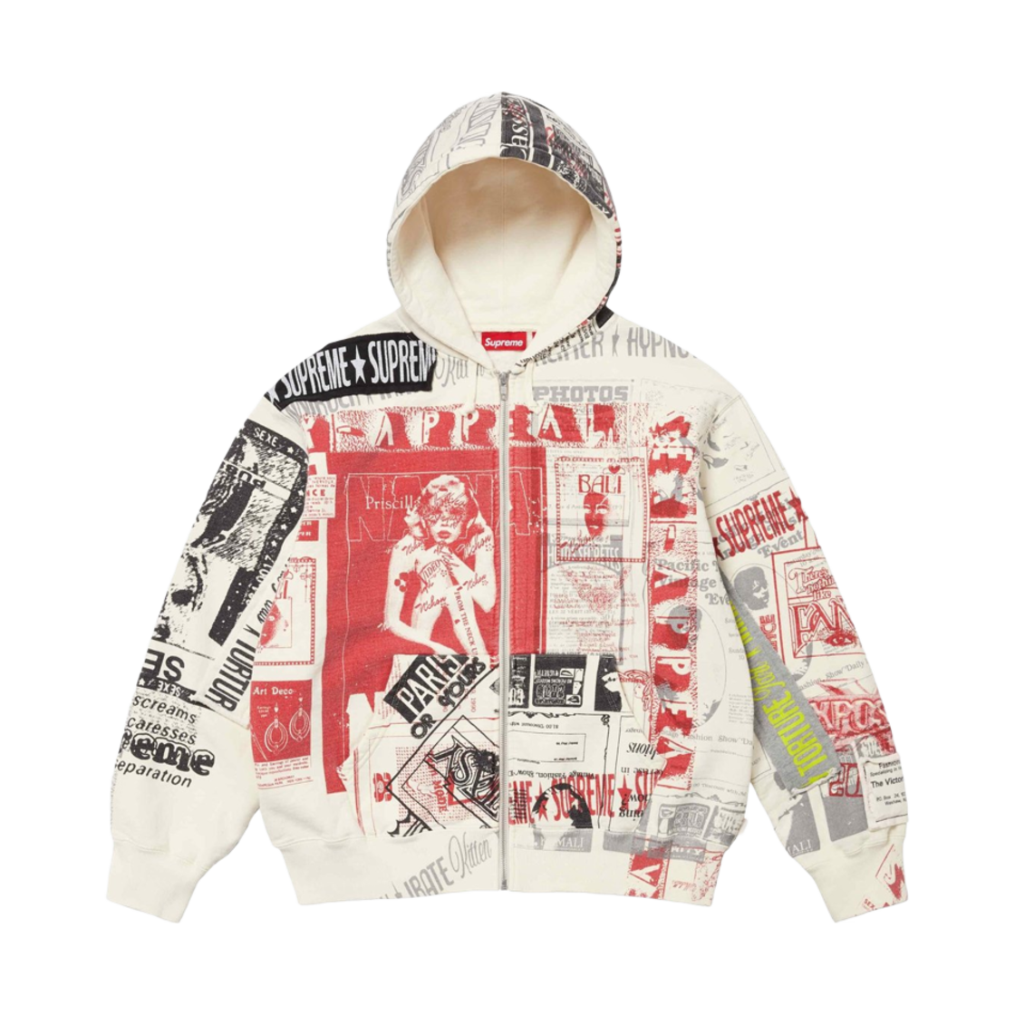 Supreme Collage Zip Up Hooded Sweatshirt White - 24SS