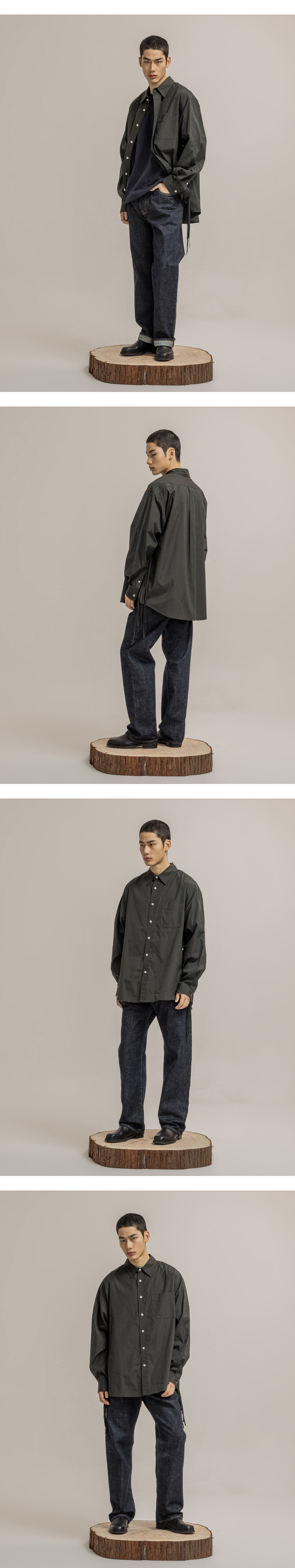 TYPEWRITER FRINGE SHIRTS는 1966년에 설립된 일본에서 오랜 역사를 가지고 있는 'SUNWELL'에서 만들어진 원단을 사용하였습니다. 100수 2합과 80수의 원사로 재직된 고밀도 TYPEWRITER 원단으로 바스락 거리는 소재감과 시원한 느낌을 느낄 수 있습니다. 선염으로 가공되어 은은한 광택감이 매력적인 고급 소재 입니다.