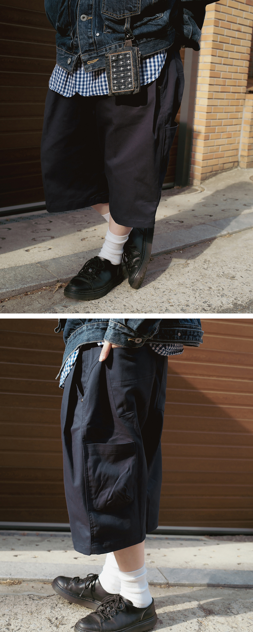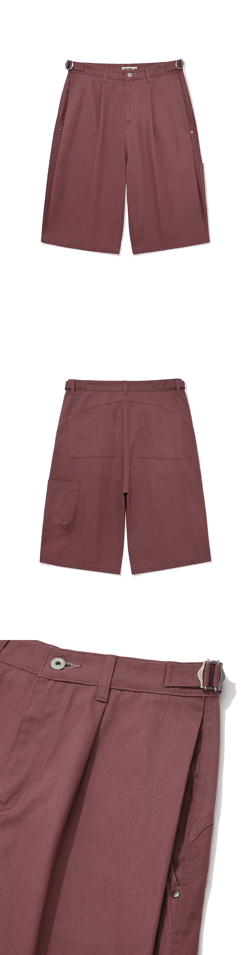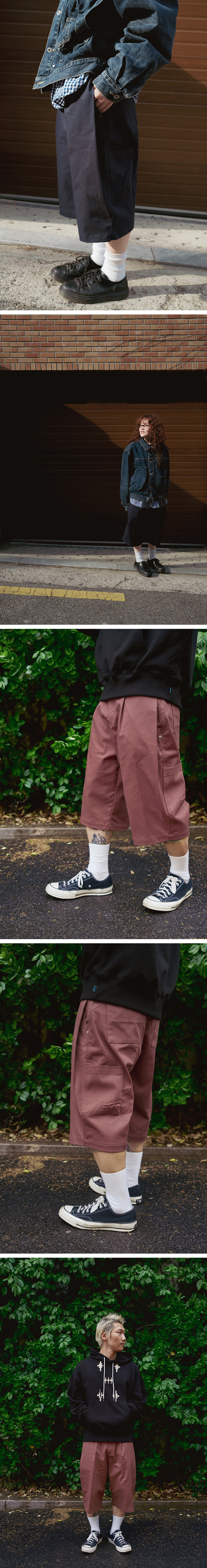 Product Info. - 워싱 가공을 거친 고밀도 코튼으로 제작되어 소프트한 스킨십의 버뮤다팬츠 - 여유 있게 떨어지는 와이드 실루엣 - 후면 곡선 형태의 요크 디자인 - 전면과 핸드포켓 위치의 더블 턱 디테일 - 다트를 활용한 입체감의 좌측 사이드포켓 디테일 - 허리 사이즈 조절 가능한 양 사이드 어드저스터 디테일 - ykk 지퍼, ykk 택버튼, ykk 리벳 사용