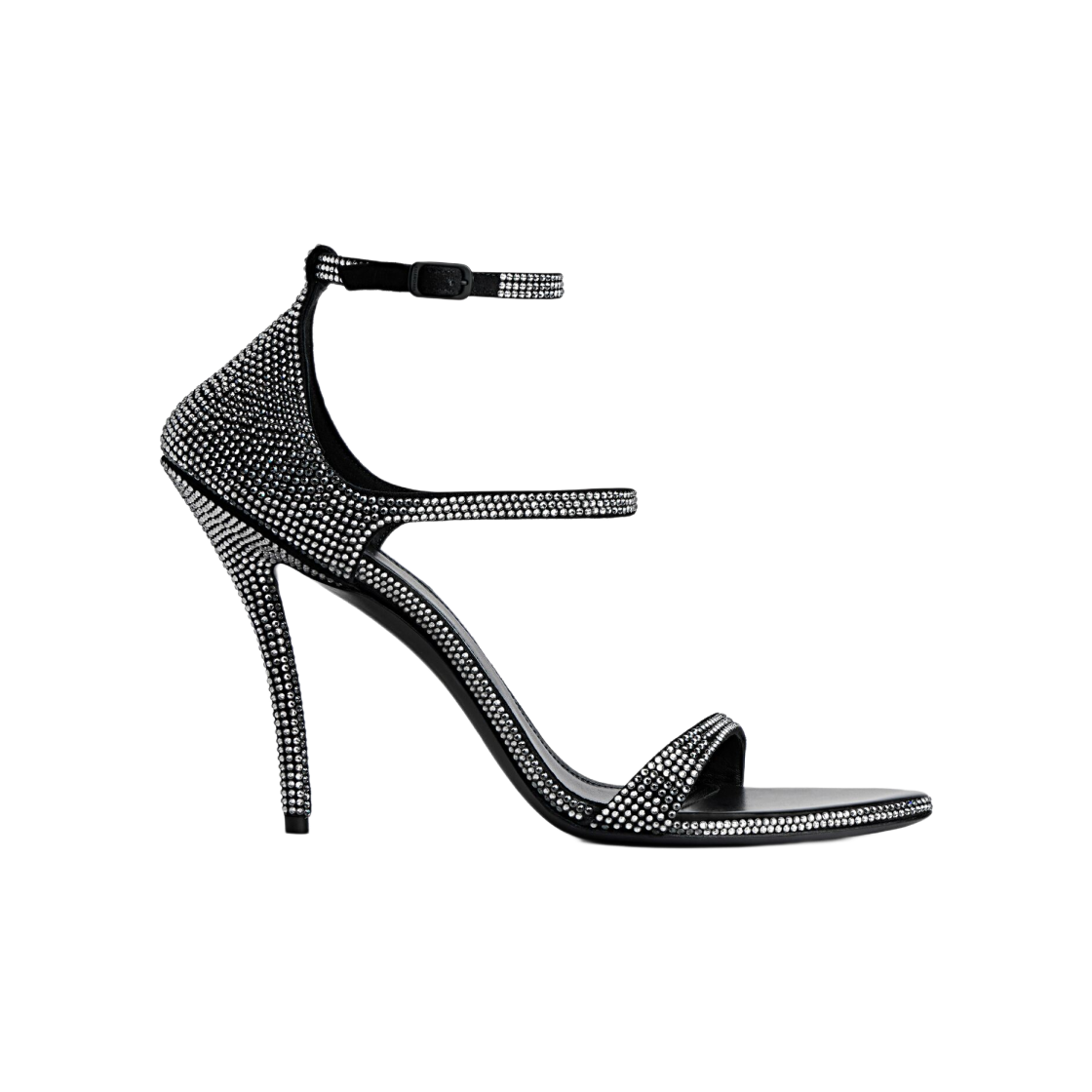 (W) 발렌시아가 허니 라인스톤 110mm 샌들 블랙 그레이