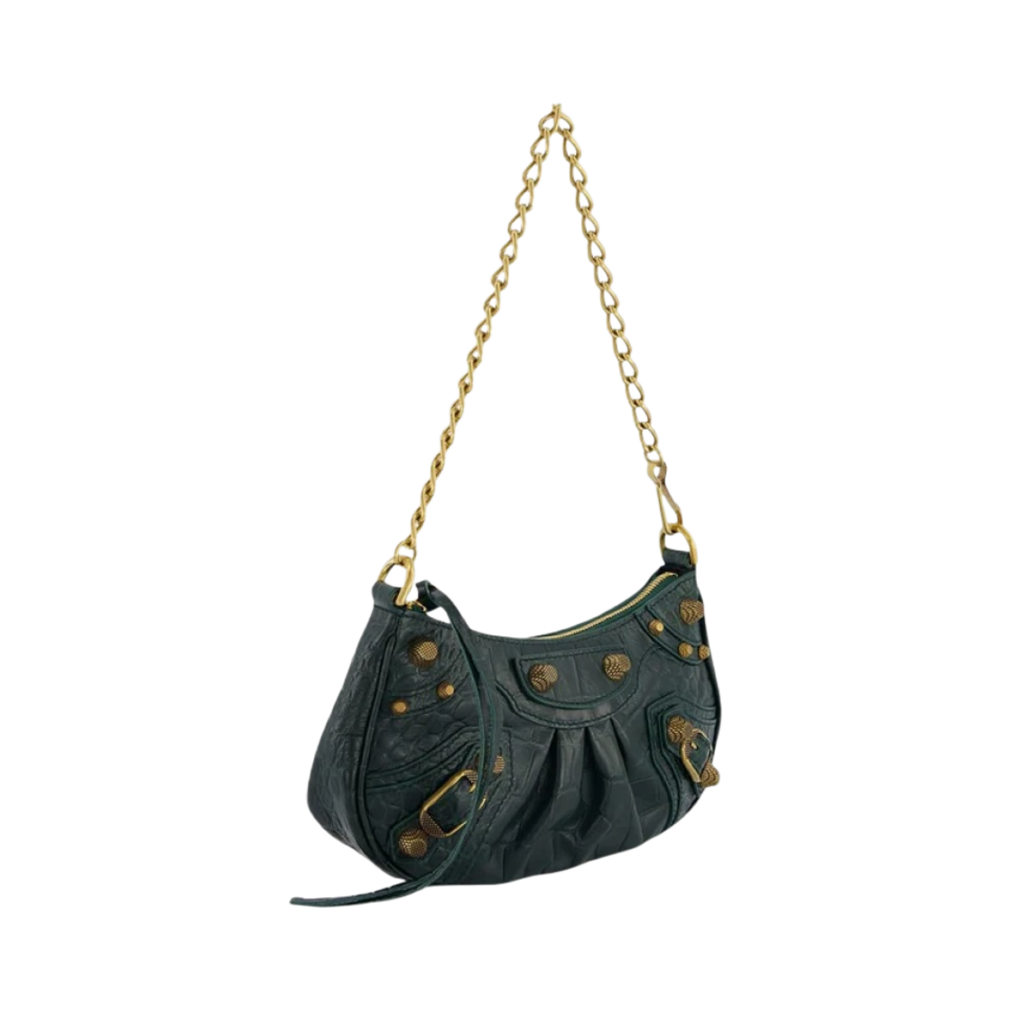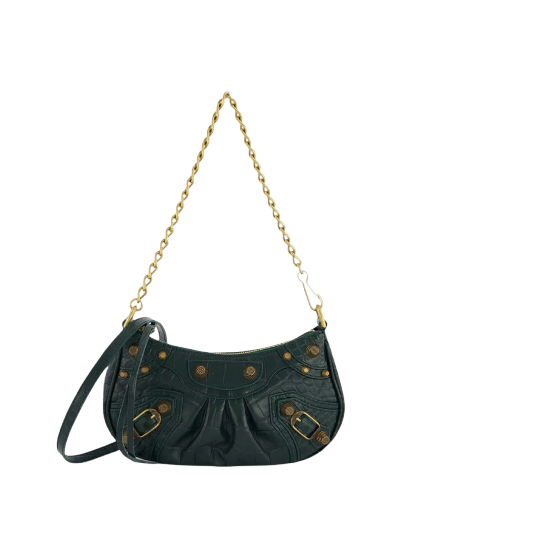 Balenciaga Le Cagole Mini Bag with Chain Crocodile Embossed Green