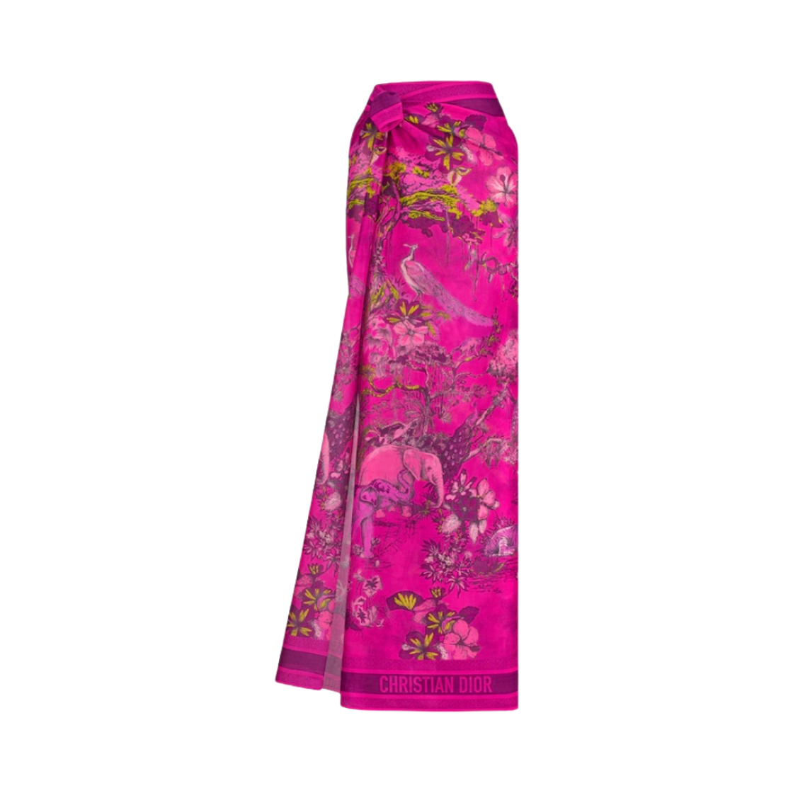 (W) Dior Toile De Jouy Voyage Sarong Cotton Rani Pink Multicolor
