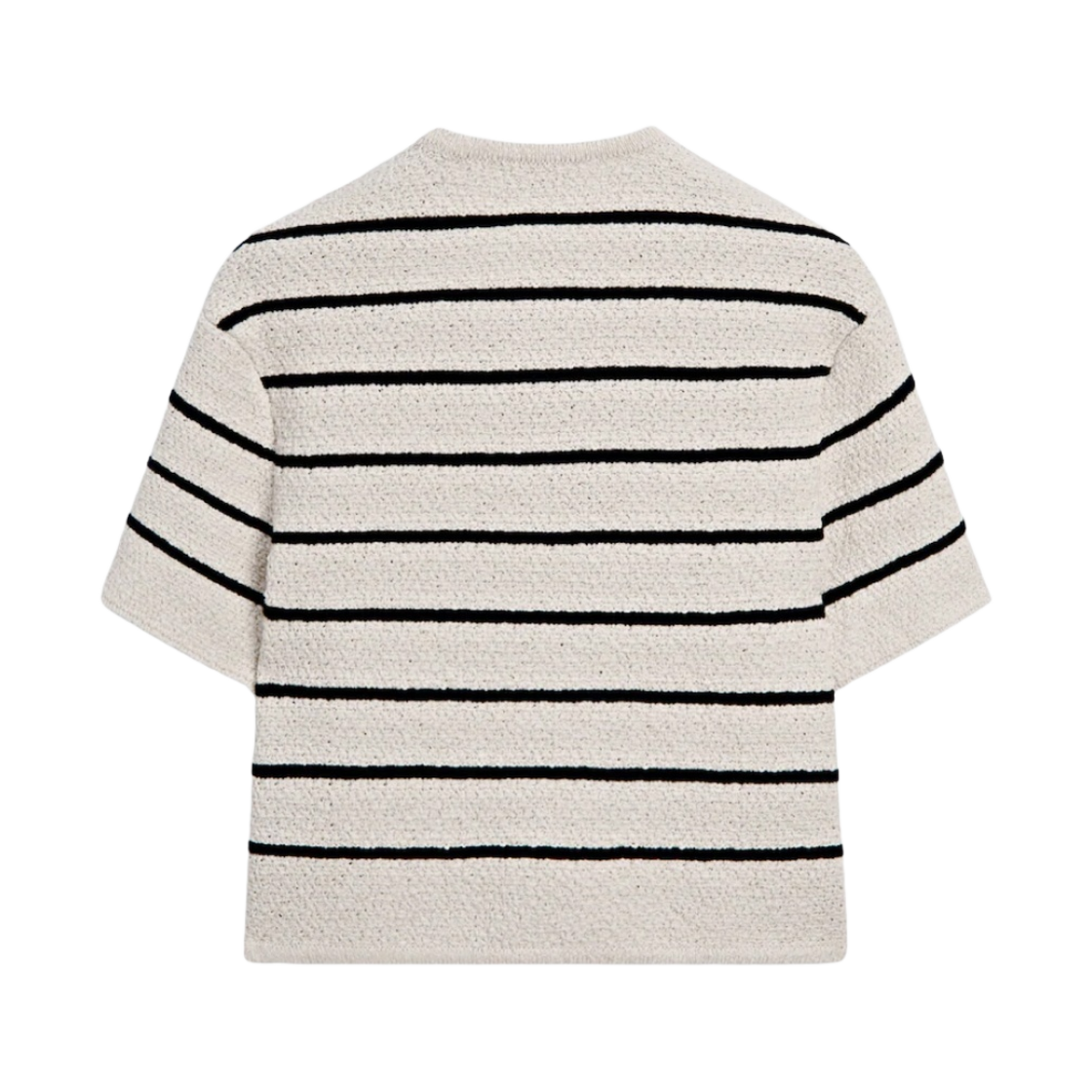 Massimo Dutti Striped Short Sleeve Textured Knit Cardigan Cream