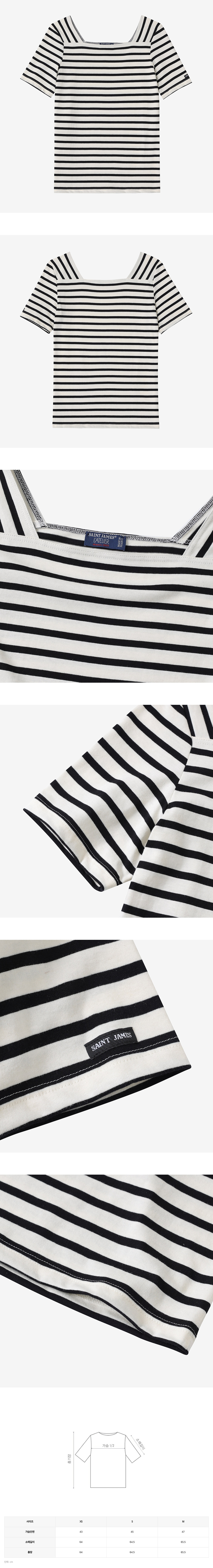 반팔 소매의 스퀘어 넥 스트라이프 티셔츠. PLENEUF II를 면 소재로 만들어, 기존 ANTI UV 소재보다 캐주얼하게 착용할 수 있다. 왼쪽 밑단에 세인트 제임스 로고 패치가 붙어 있다.