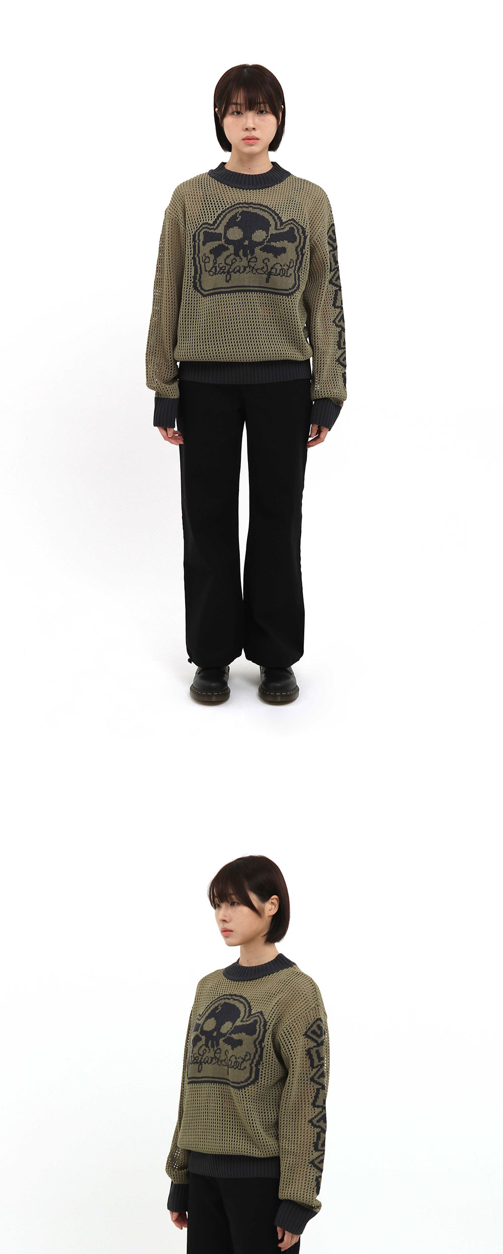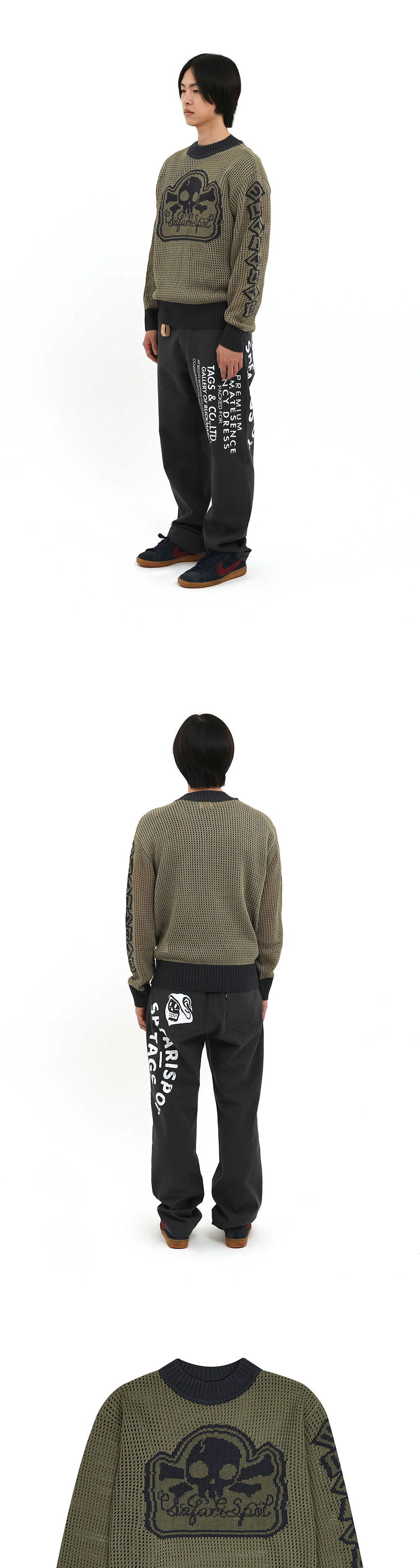 사파리스팟 멀티 스컬 메쉬 니트 올리브 네이비