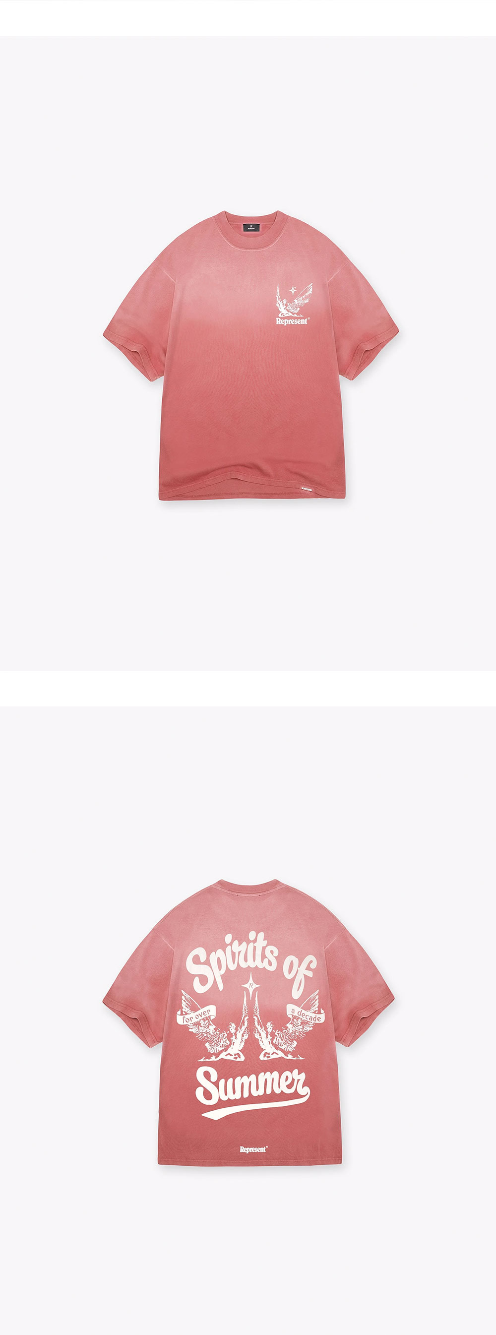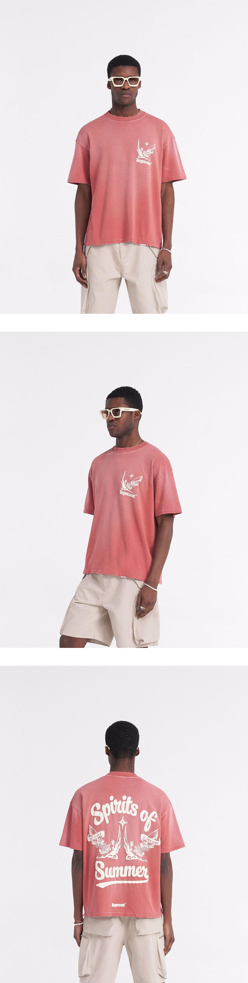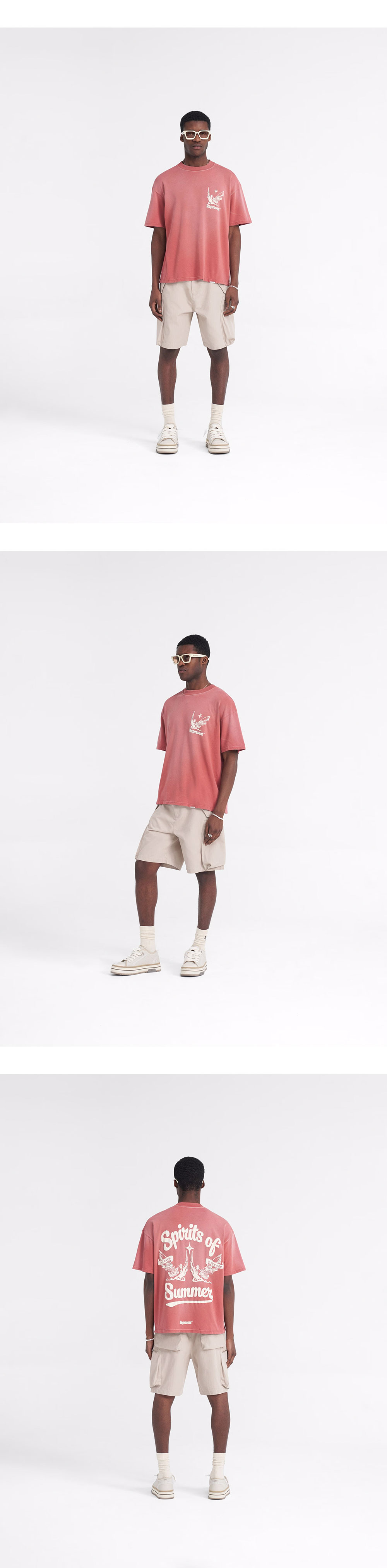 살짝 오버사이즈 핏이 돋보이는 럭셔리 코튼 티셔츠, 스피릿 오브 썸머 티셔츠를 소개합니다. 피그먼트 염료와 스프레이 기법으로 제작되어 생긴 그라데이션 워싱이 특징입니다. - 선라이즈 오버사이즈 티셔츠 - 안료 염료 및 스프레이 기술 - 앞면과 뒷면에 퍼프 프린트 그래픽 *모델 신체 스펙 : 182cm, 73kg / 착용 사이즈 : M