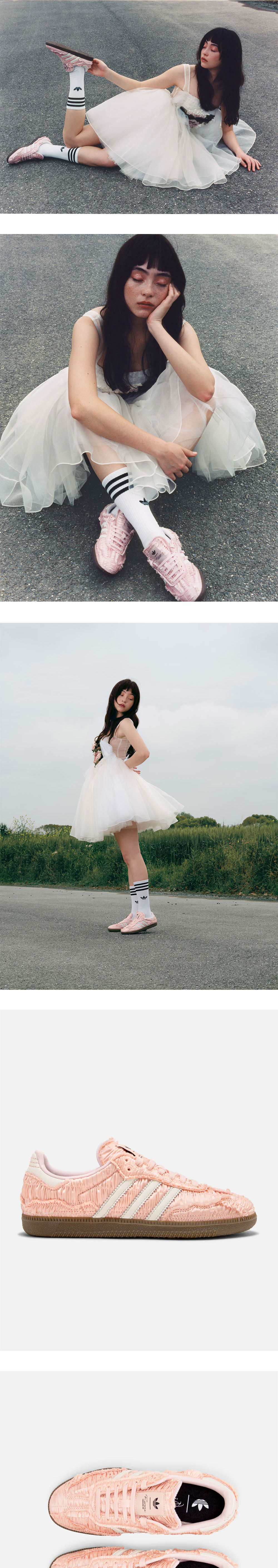 상하이 패션 위크에서 열린 CLOT SS24 “Change The Generation” 쇼에서 선공개되었던 캐롤라인 후와 아디다스 오리지널스의 첫 콜라보. 중국의 동식물에서 영감을 받아 디자인된 특별한 아디다스 삼바는 유려한 실루엣의 레이스와 실크 소재를 외관에 더해 로맨틱하고 페미닌한 비주얼로 새롭게 탄생했습니다. - 핑크 컬러의 실크 소재가 셔링으로 겹겹이 쌓인 디자인 - 톱니 라인으로 마무리된 3-스트라이프 * 본 상품은 잠실 롯데월드몰 KREAM 오프라인 스토어에서 구매 가능합니다.