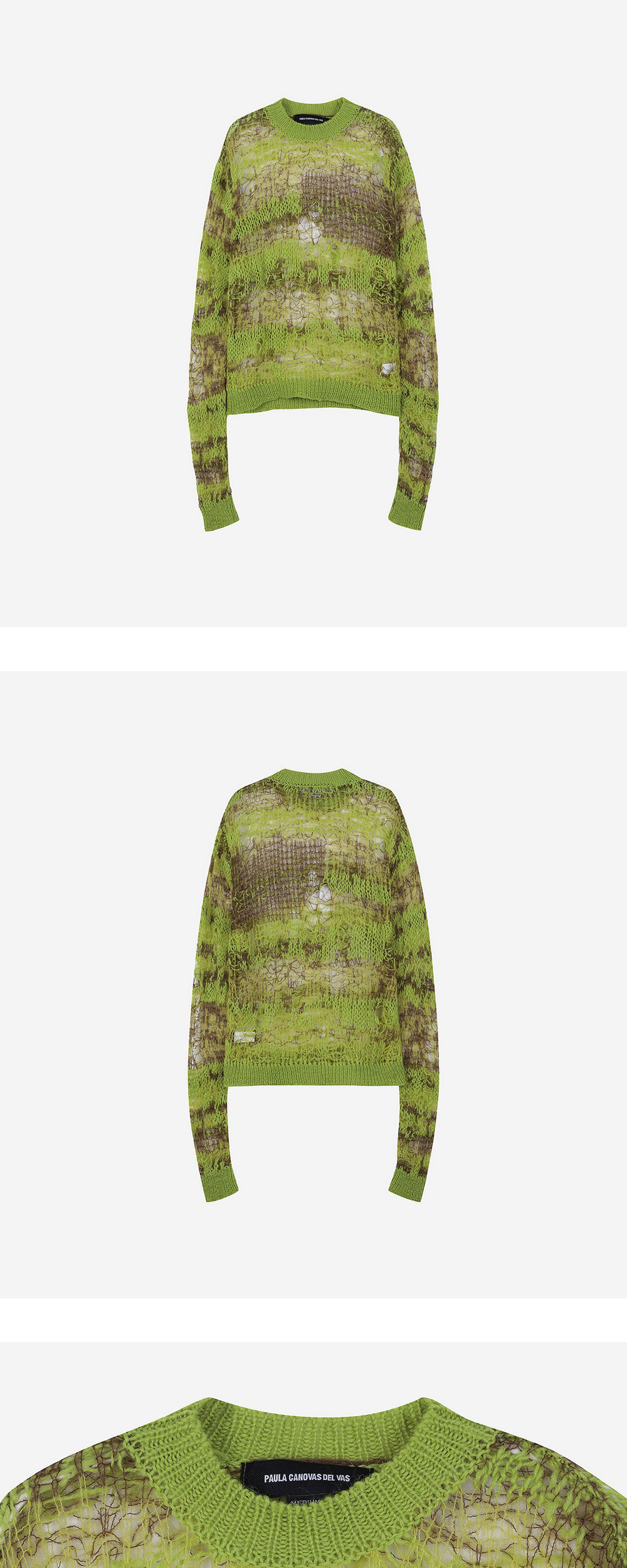 전체적인 디스트레스드 효과와 독특한 패턴이 매력적인 파울라 카노바스 델 바스의 렉드 점퍼입니다. - 울 혼방 - 디스트레스드 효과 - 크루 넥 - 루즈핏 소매