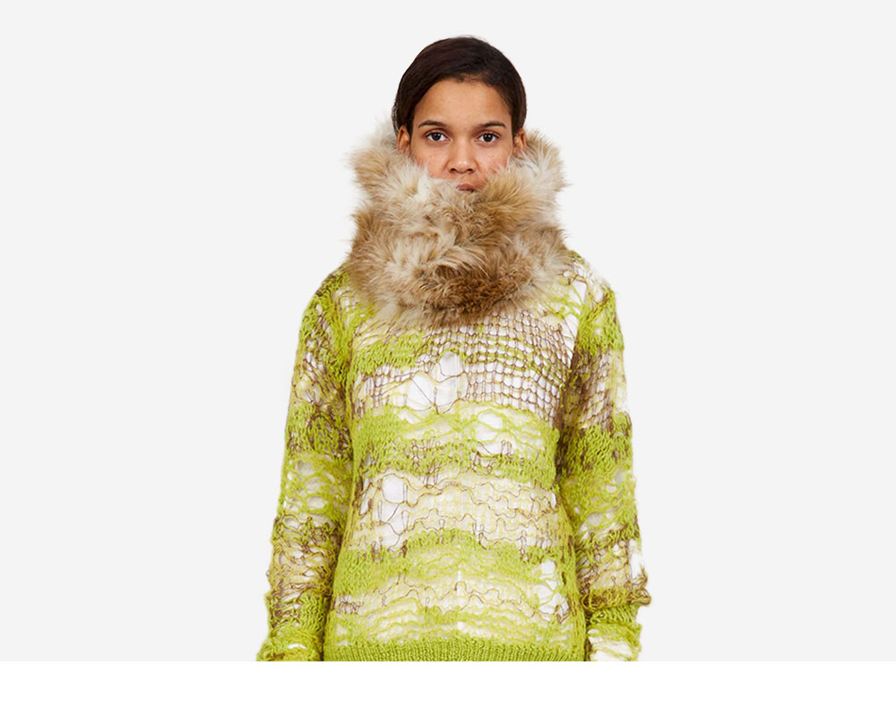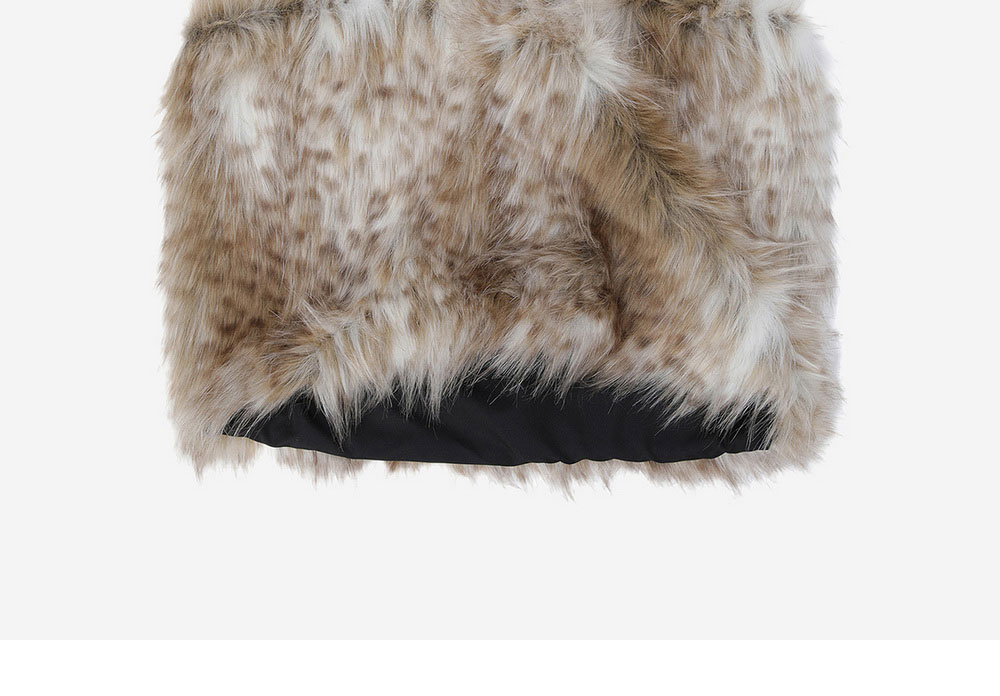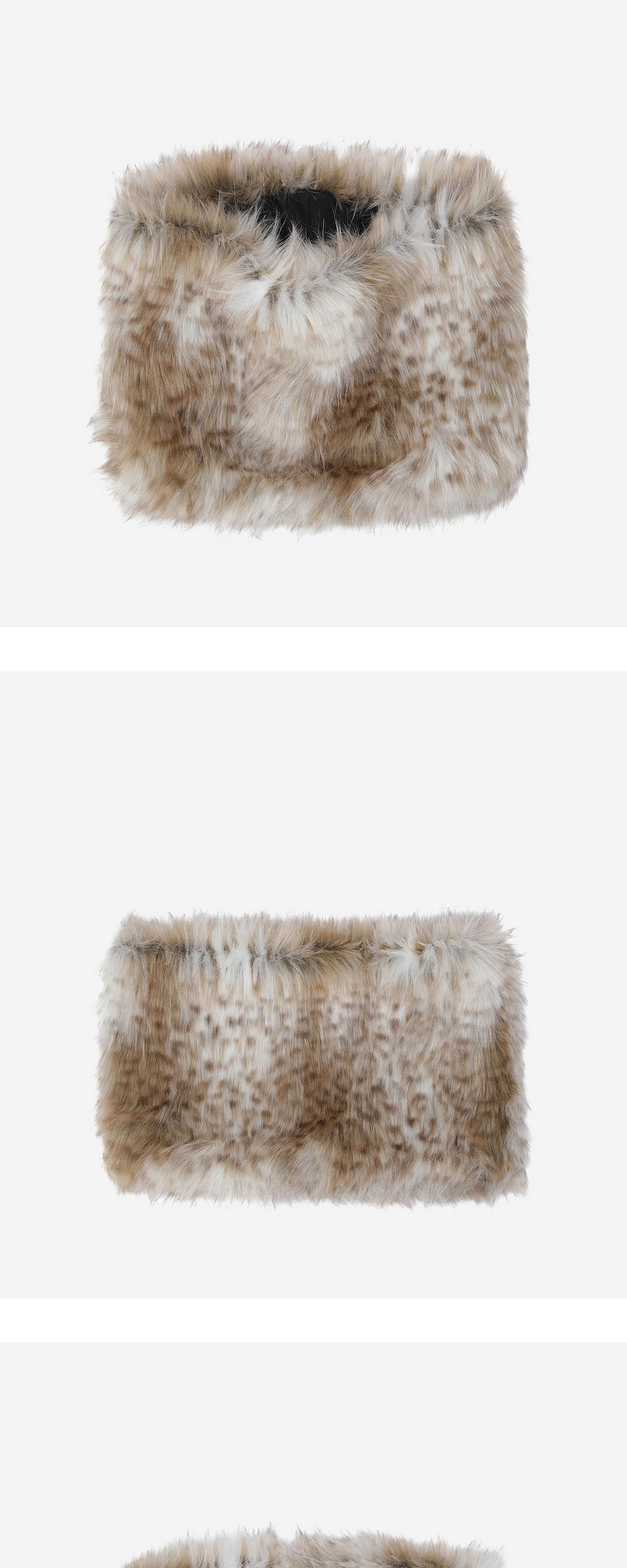 혼합된 애니멀 패턴 색감의 퍼 워머입니다. 높은 기장감으로 얼굴이나 머리를 가려 착용할 수 있습니다.