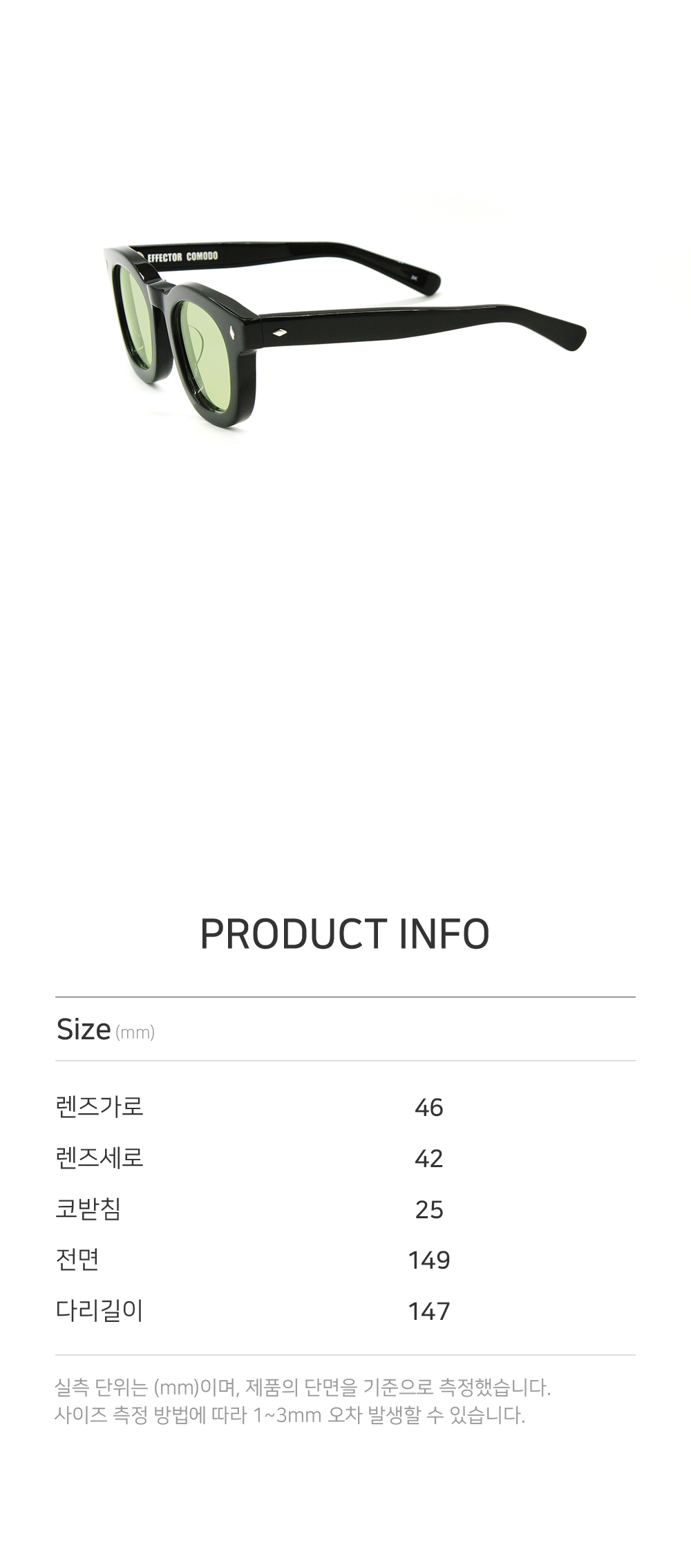*안경테에 장착되어있는 렌즈는 프레임의 형태의 변형을 막기 위한 플라스틱 데모렌즈입니다.