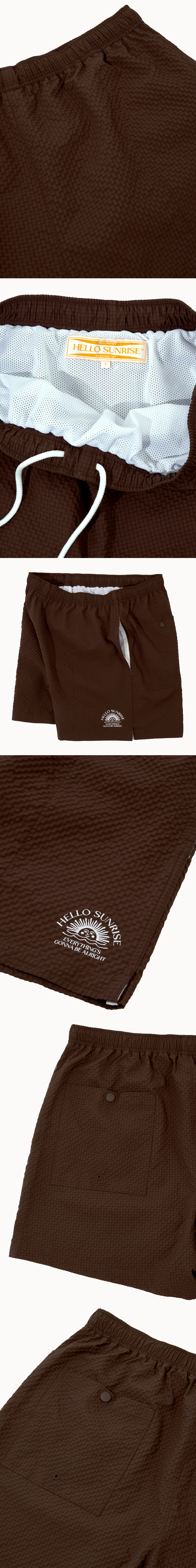 Hello Sunrise 레귤러핏의 중간 기장감의 남녀 공용의 스윔팬츠입니다.<br><br> - 전면 헬로 선라이즈 로고 그래픽<br> - 허리 밴딩으로 사이즈 조절이 용이<br> - 사이드 2개의 포켓<br> - 후면 1개의 포켓<br> - 부드러운 메쉬 안감 사용으로 편안한 착용감 제공<br> - 포켓에 메쉬 덫댐 사용으로 물의 배출 용이<br> - 수영복과 일상복으로의 이중 사용 가능<br><br> * Shell : Nylon 100%<br><br> * Made in Vietnam<br>