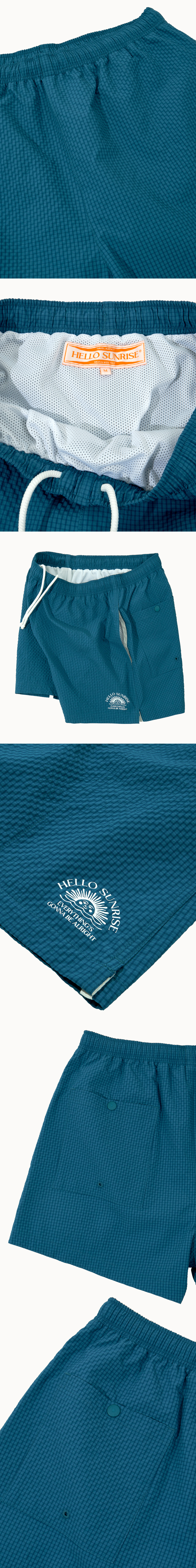 Hello Sunrise 레귤러핏의 중간 기장감의 남녀 공용의 스윔팬츠입니다.<br><br> - 전면 헬로 선라이즈 로고 그래픽<br> - 허리 밴딩으로 사이즈 조절이 용이<br> - 사이드 2개의 포켓<br> - 후면 1개의 포켓<br> - 부드러운 메쉬 안감 사용으로 편안한 착용감 제공<br> - 포켓에 메쉬 덫댐 사용으로 물의 배출 용이<br> - 수영복과 일상복으로의 이중 사용 가능<br><br> * Shell : Nylon 90% / Polyester 10%<br><br> * Made in Vietnam<br>