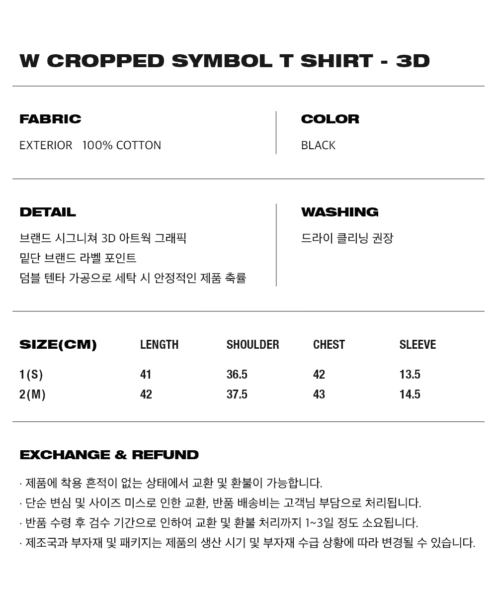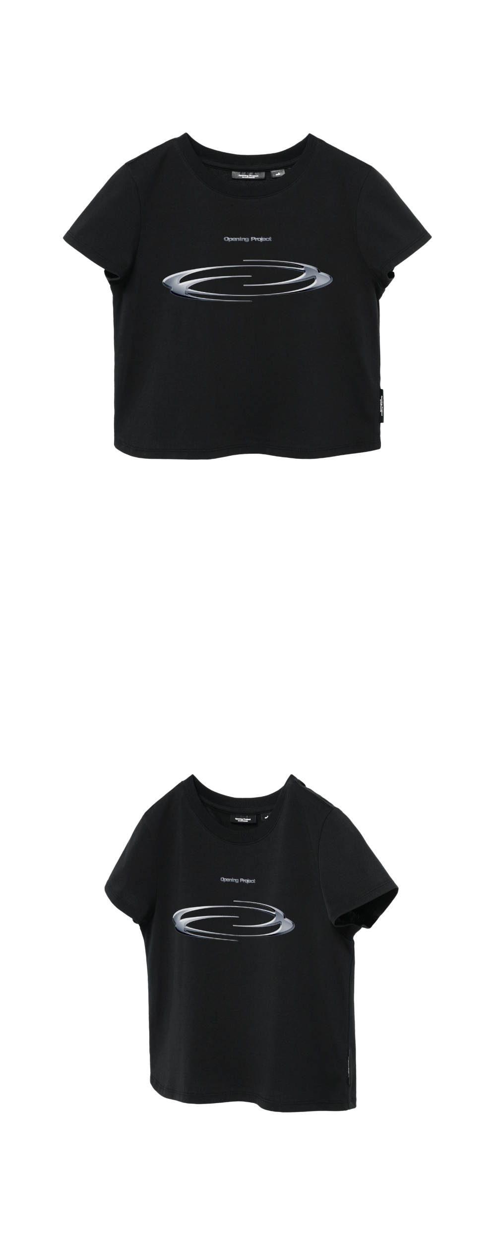 오프닝프로젝트 여성 크롭 심볼 티셔츠 3D 블랙